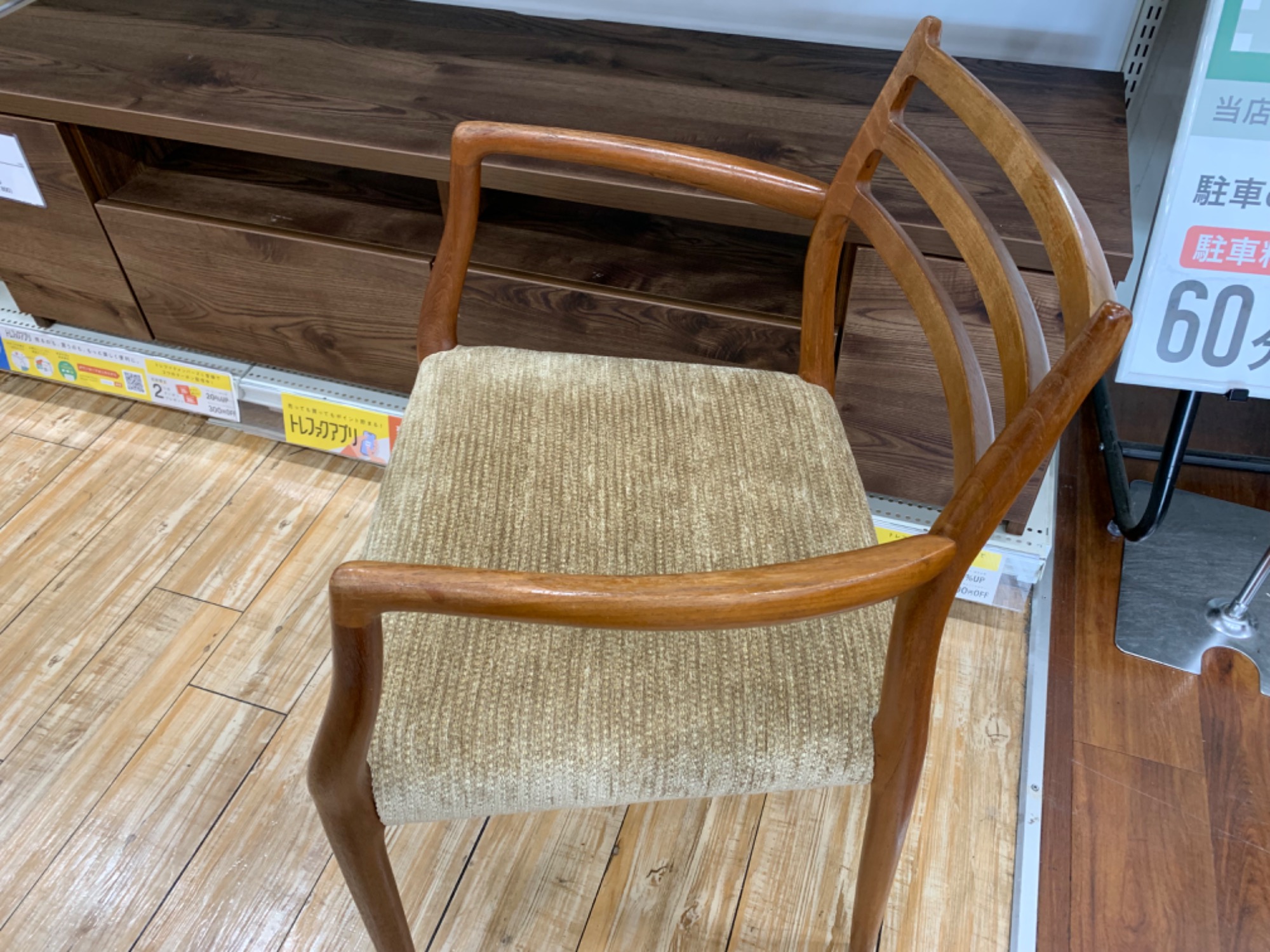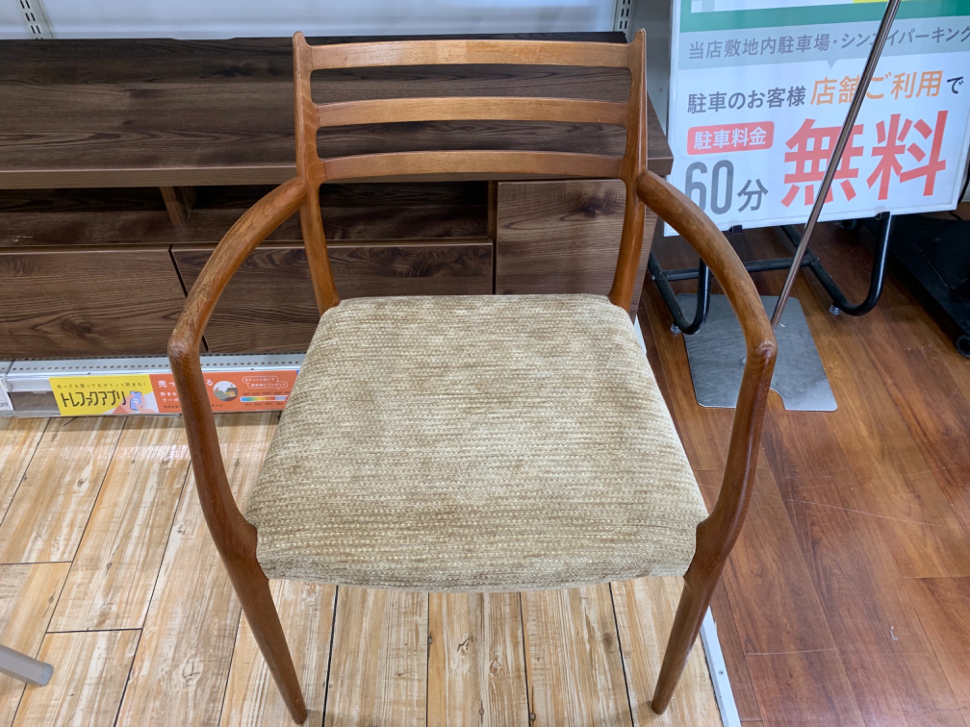 備考:アームレスト付き、キズ有、ニスにムラ有り
