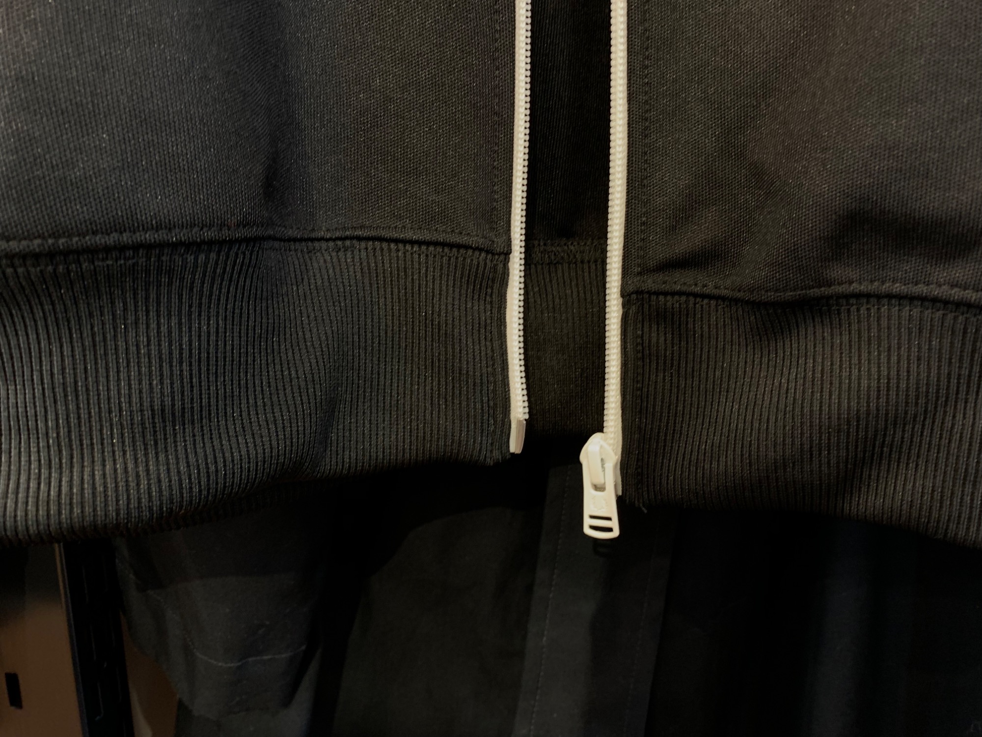 シンプルなブラックの色味に、ホワイトのジップと袖のローレルリステープが映えるデザインで、これからの季節にピッタリなアイテムです!