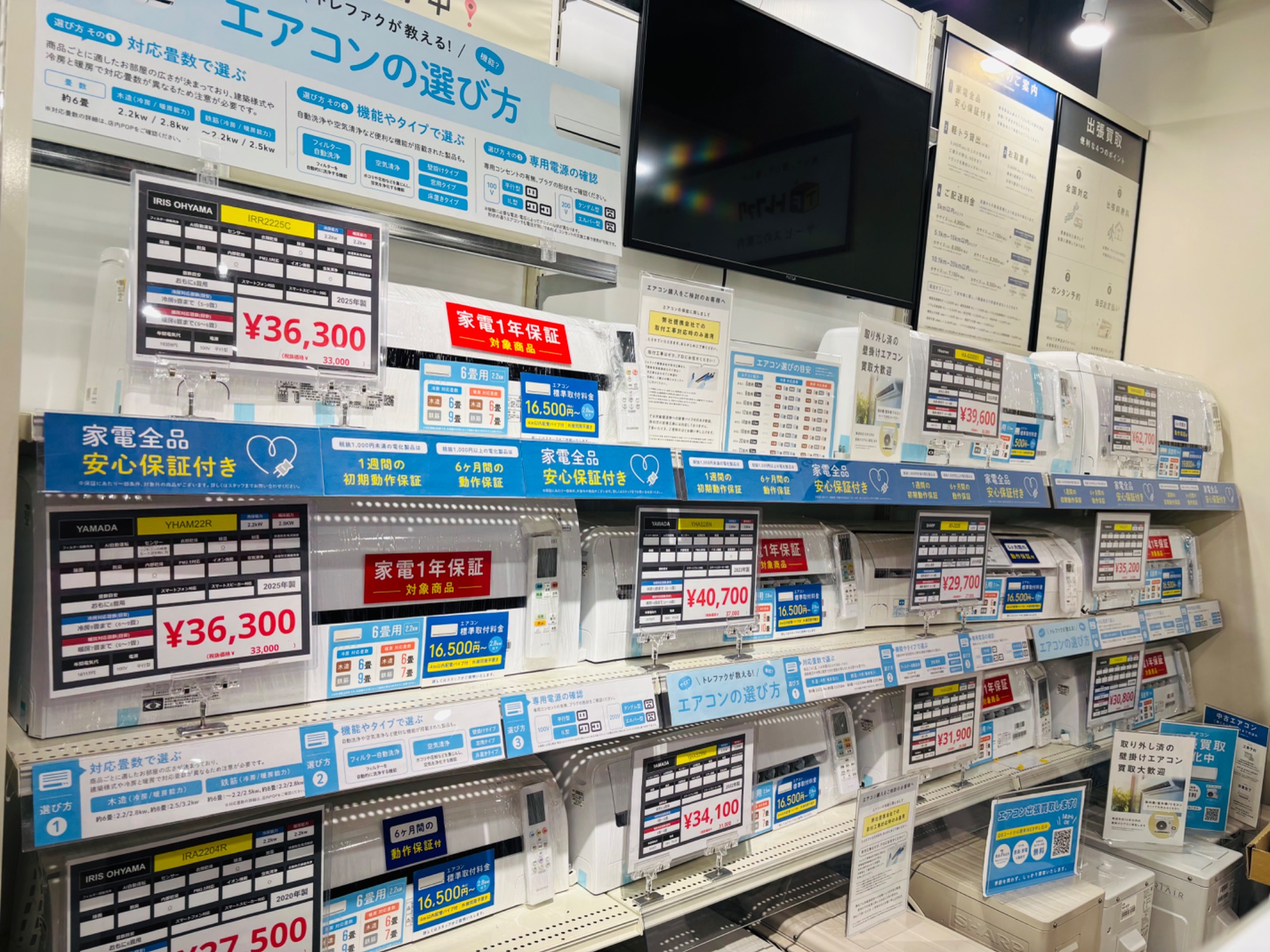 当店では、単身用のコンパクトな6畳用モデルから、リビング向けの大型モデルまで幅広く取り揃えております。