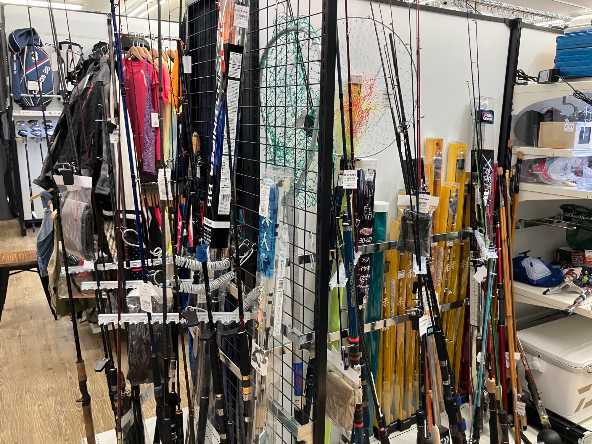 釣り竿がたくさん入荷し釣りコーナーができました!!