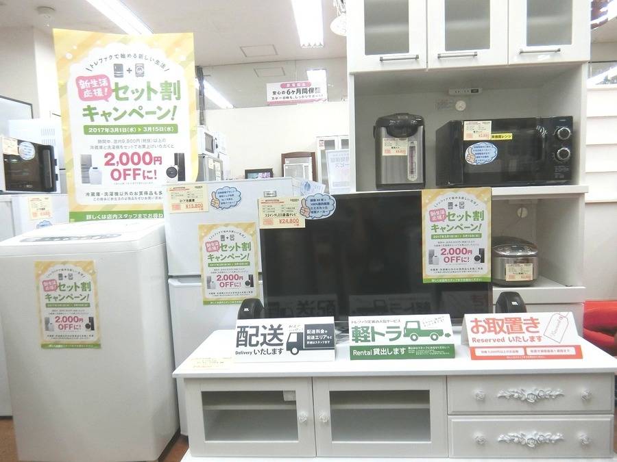 税抜き9,800円以上の冷蔵庫と洗濯機をまとめてご購入いただくと