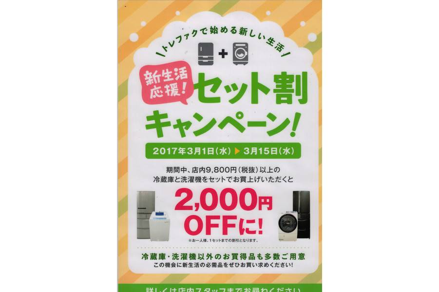 税抜き9,800円以上の冷蔵庫と洗濯機をまとめてご購入いただくと