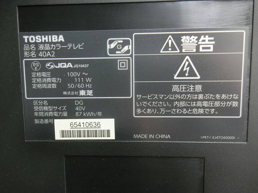 商品名:TOSHIBA40インチ LED液晶テレビ