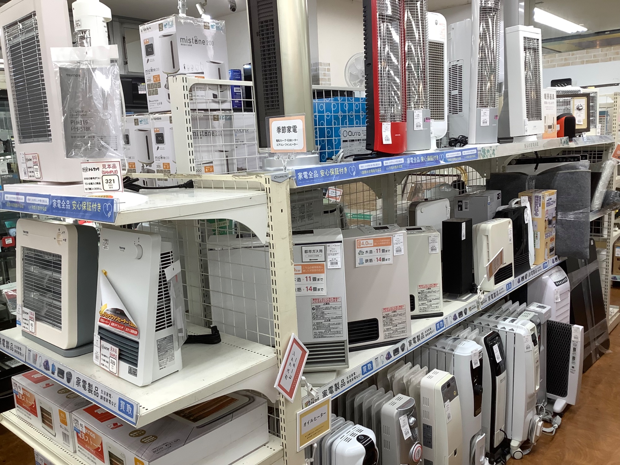 当店では製造から10年以内の冬物家電製品