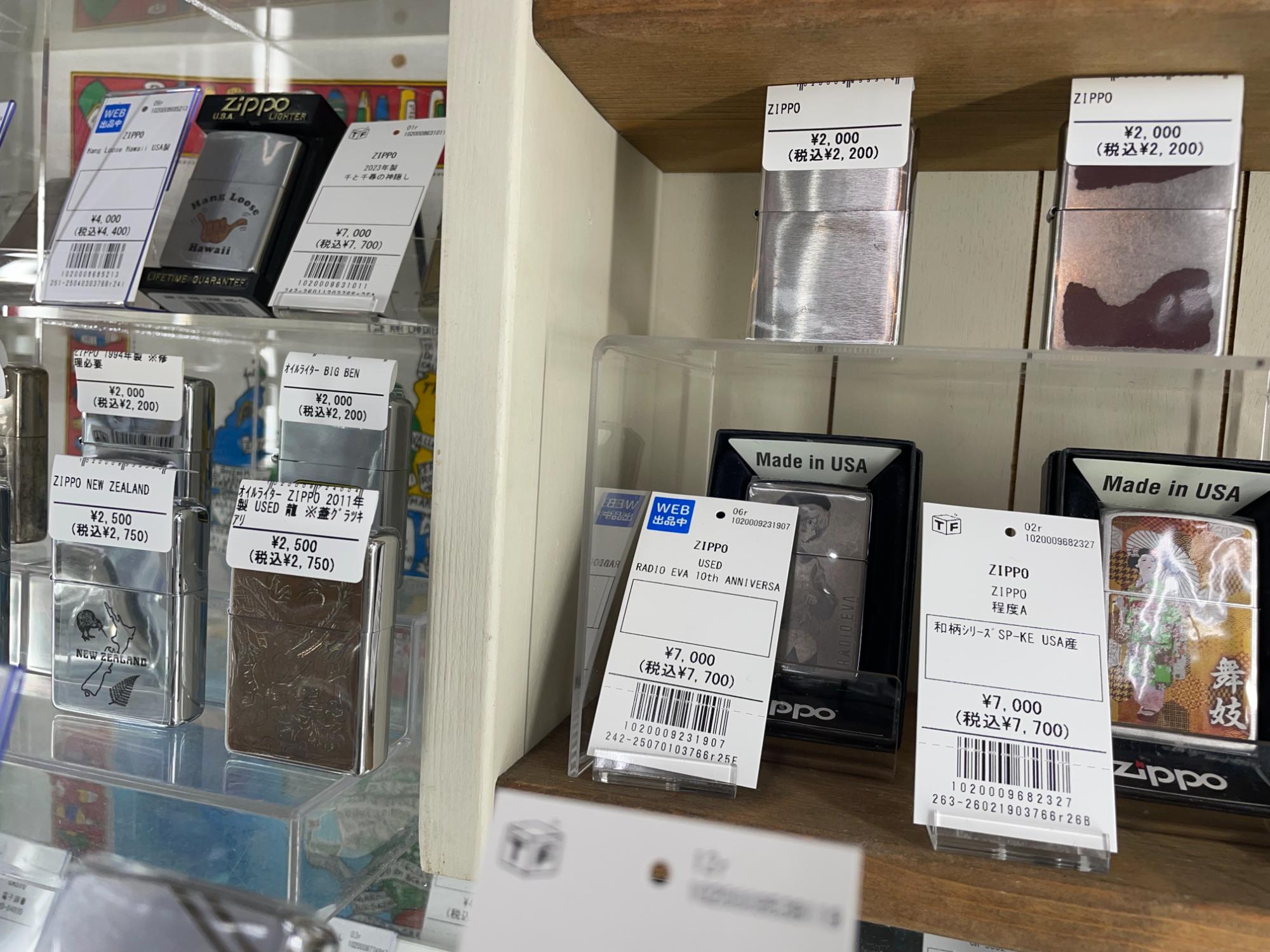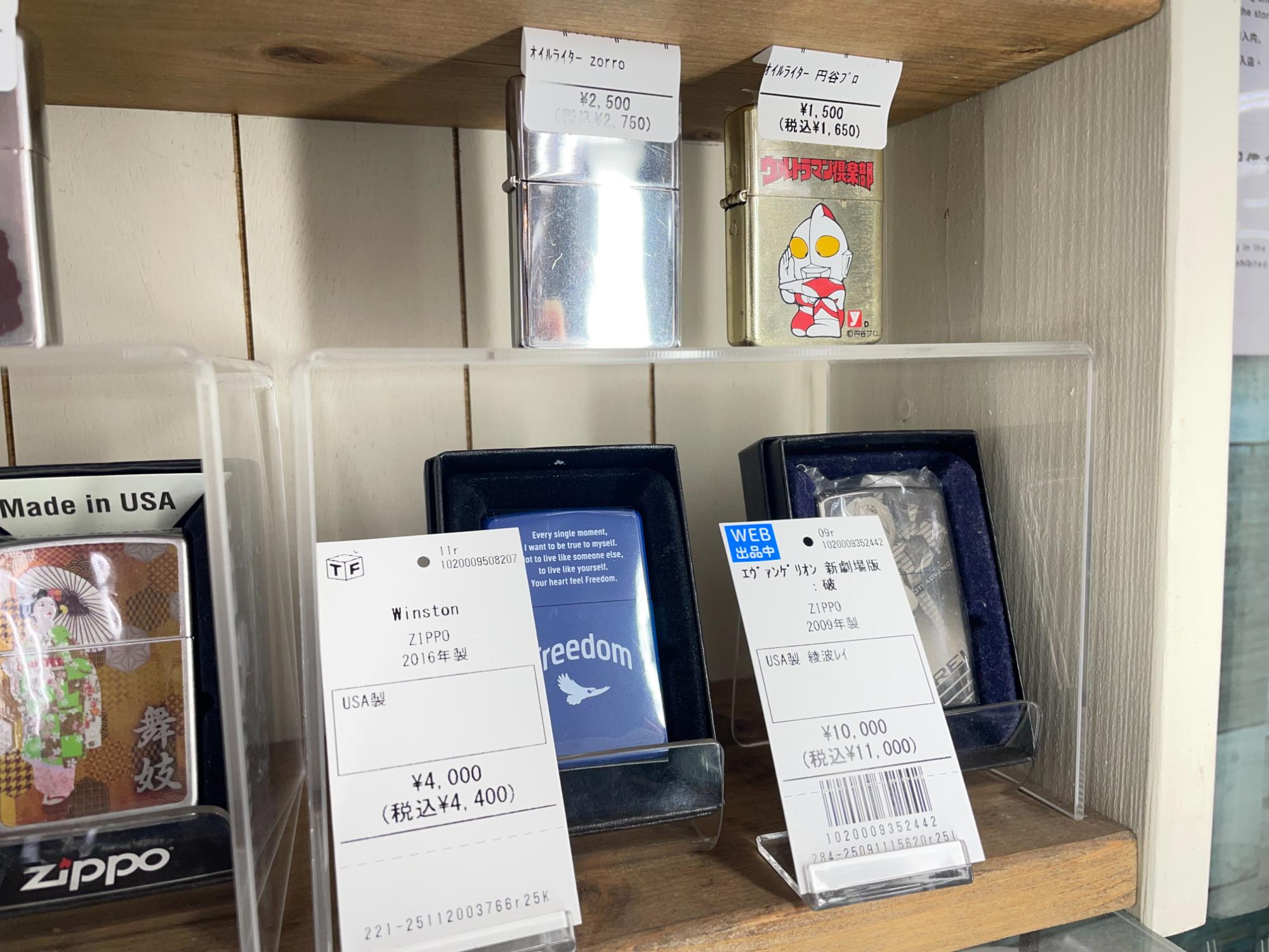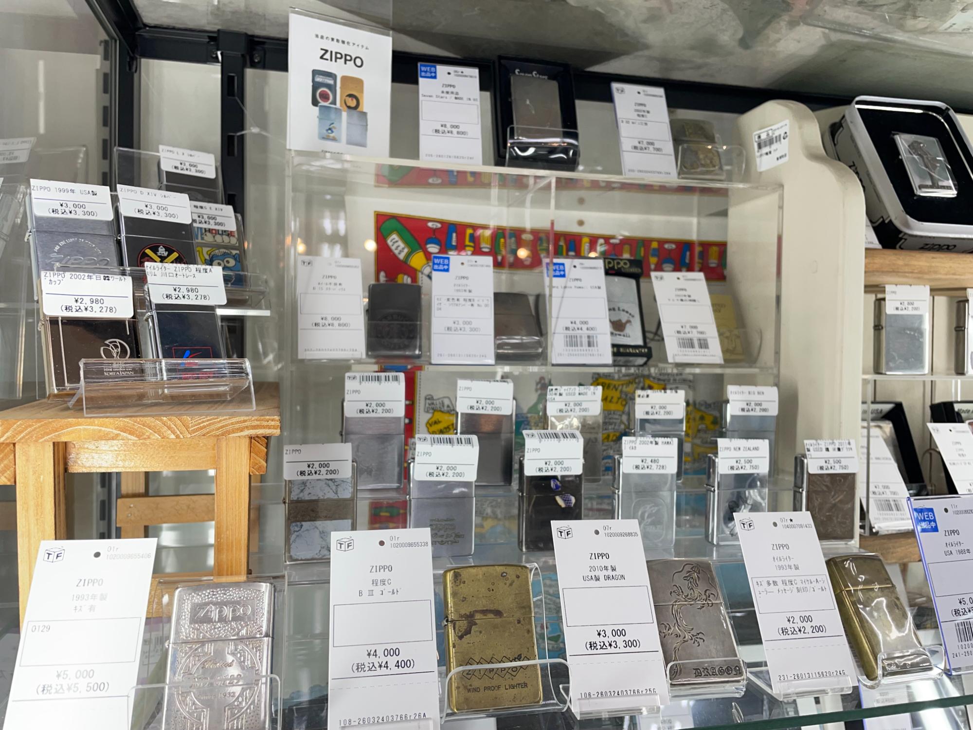店頭では、ZIPPOライターをはじめ、