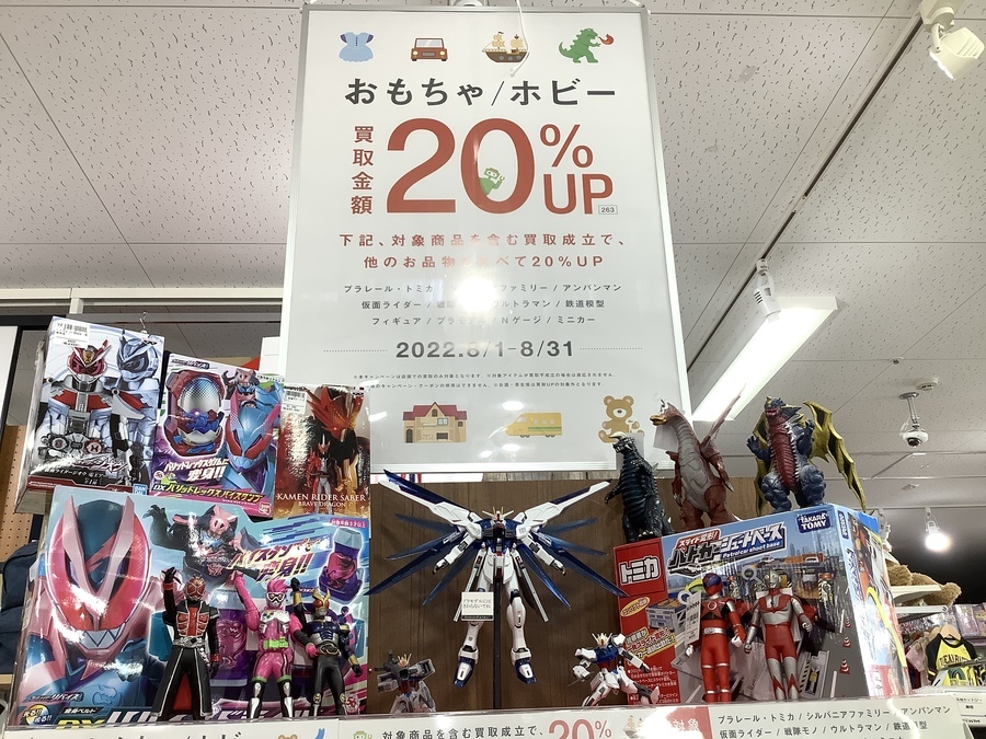 8月中に対象のおもちゃ・ホビーをお売りいただくと、すべての買取が20%UPとなります!