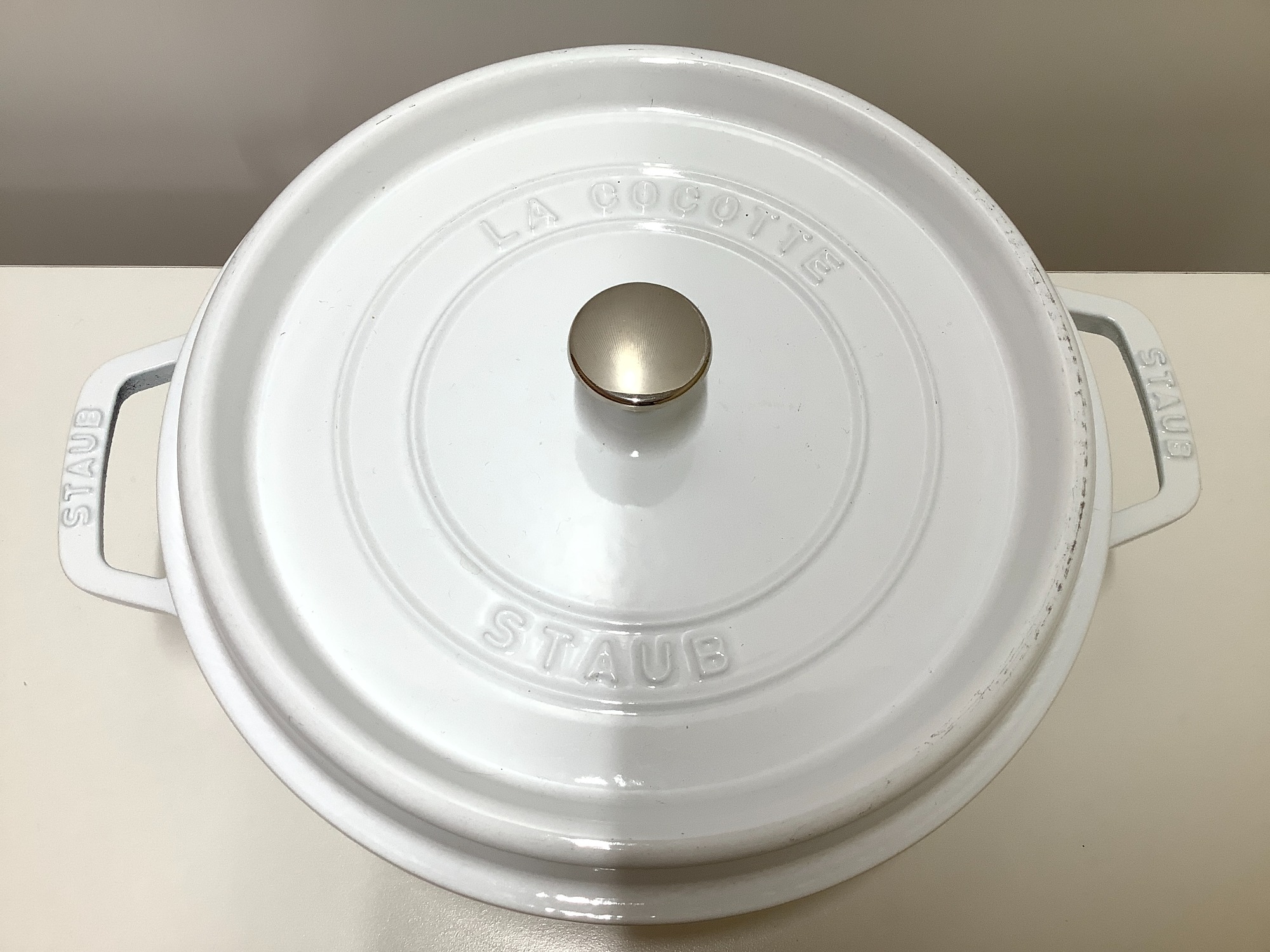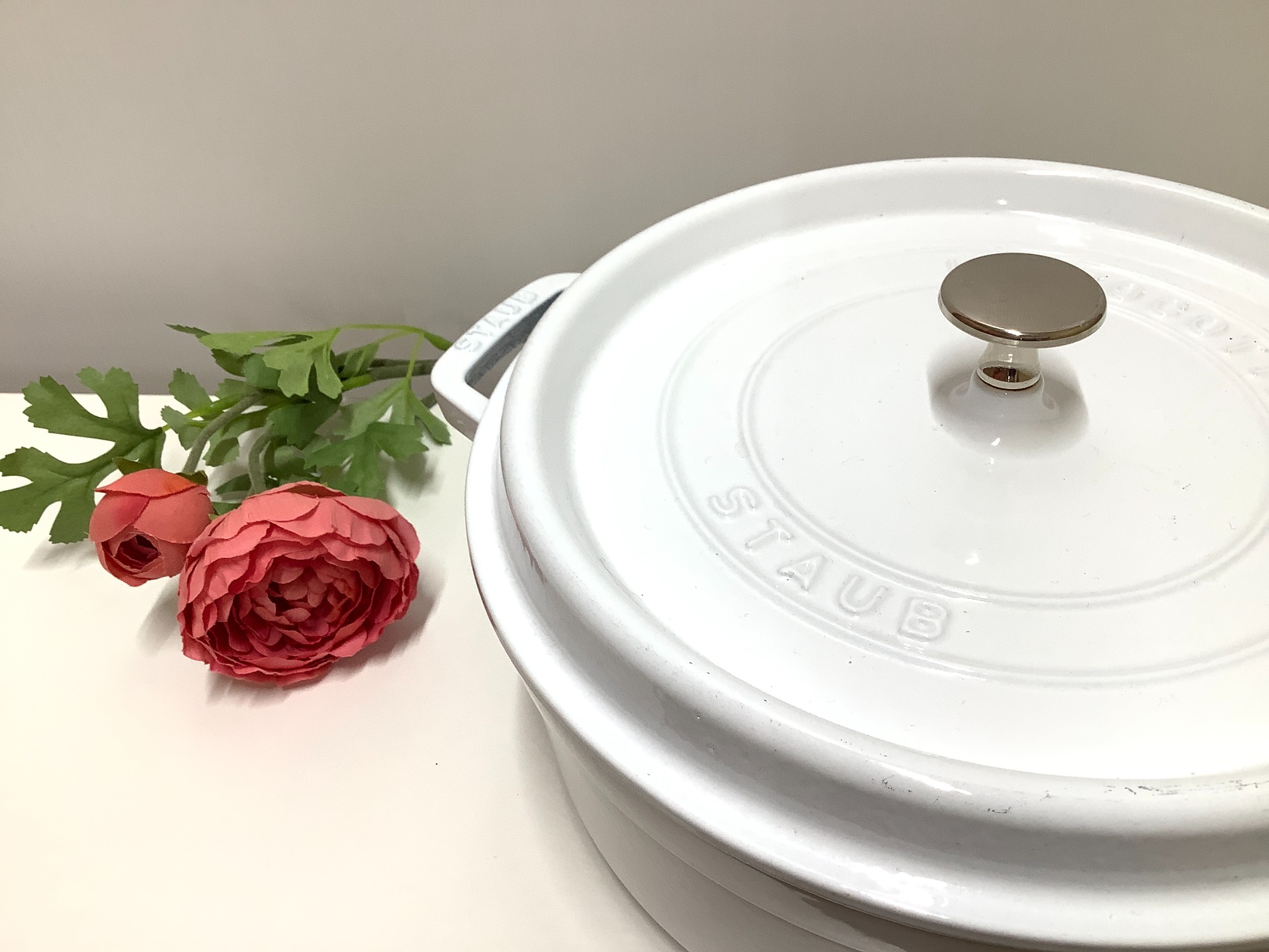 【スマホで購入】ピコ・ココットラウンド26cmホワイトのStaub(ストウブ)が入荷しました♪