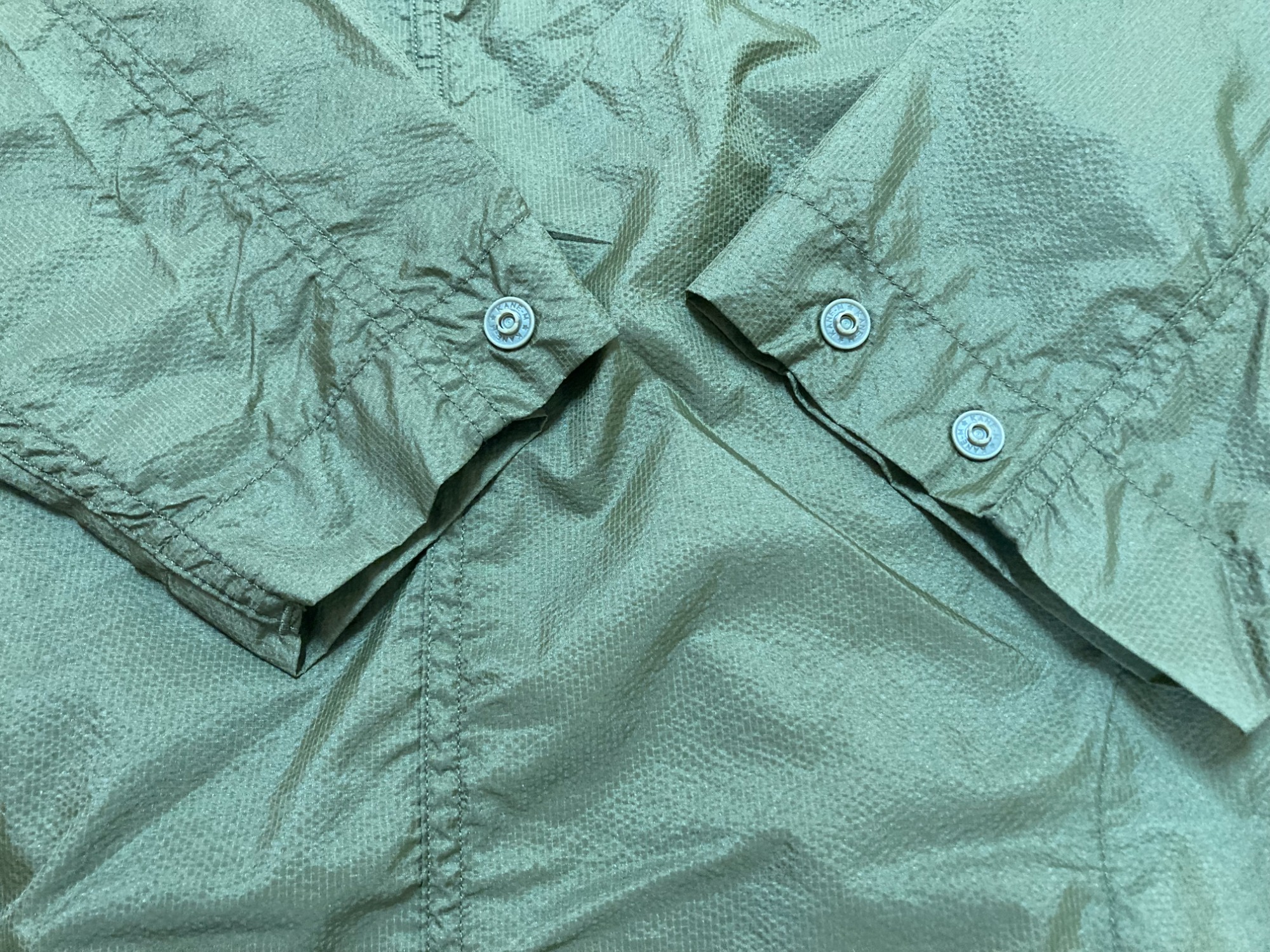 超軽量のリップストックナイロンでアウターとしてはもちろんインナーでもスッキリごわつかず着まわしのきく一着です!