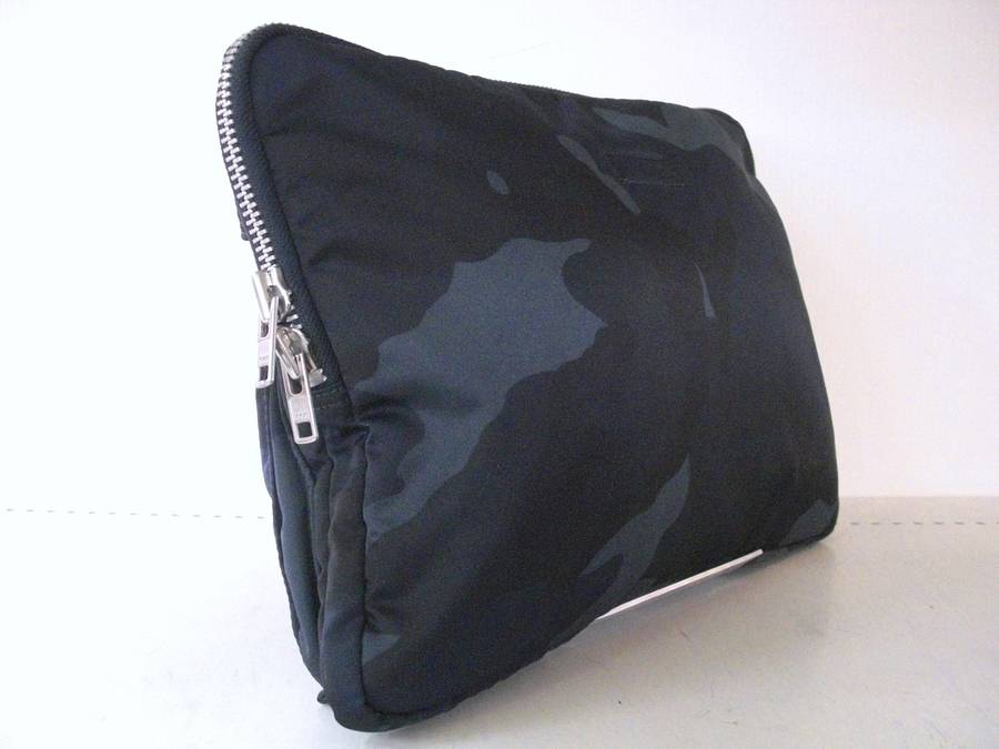 ネイビーをベースにしたカモフラージュ柄が、無骨になりがちなバッグをカジュアルに仕立てています♪