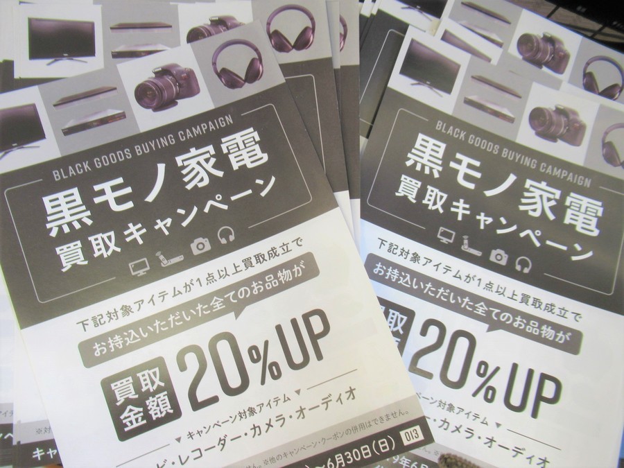 今月6月、黒モノ家電買取20%UPキャンペーンを行っております!