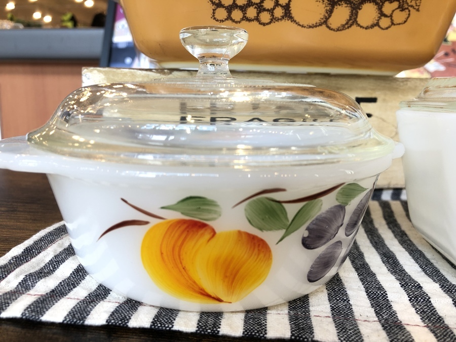 こちらはFireKingの少し小ぶりなフルーツキャセロールです