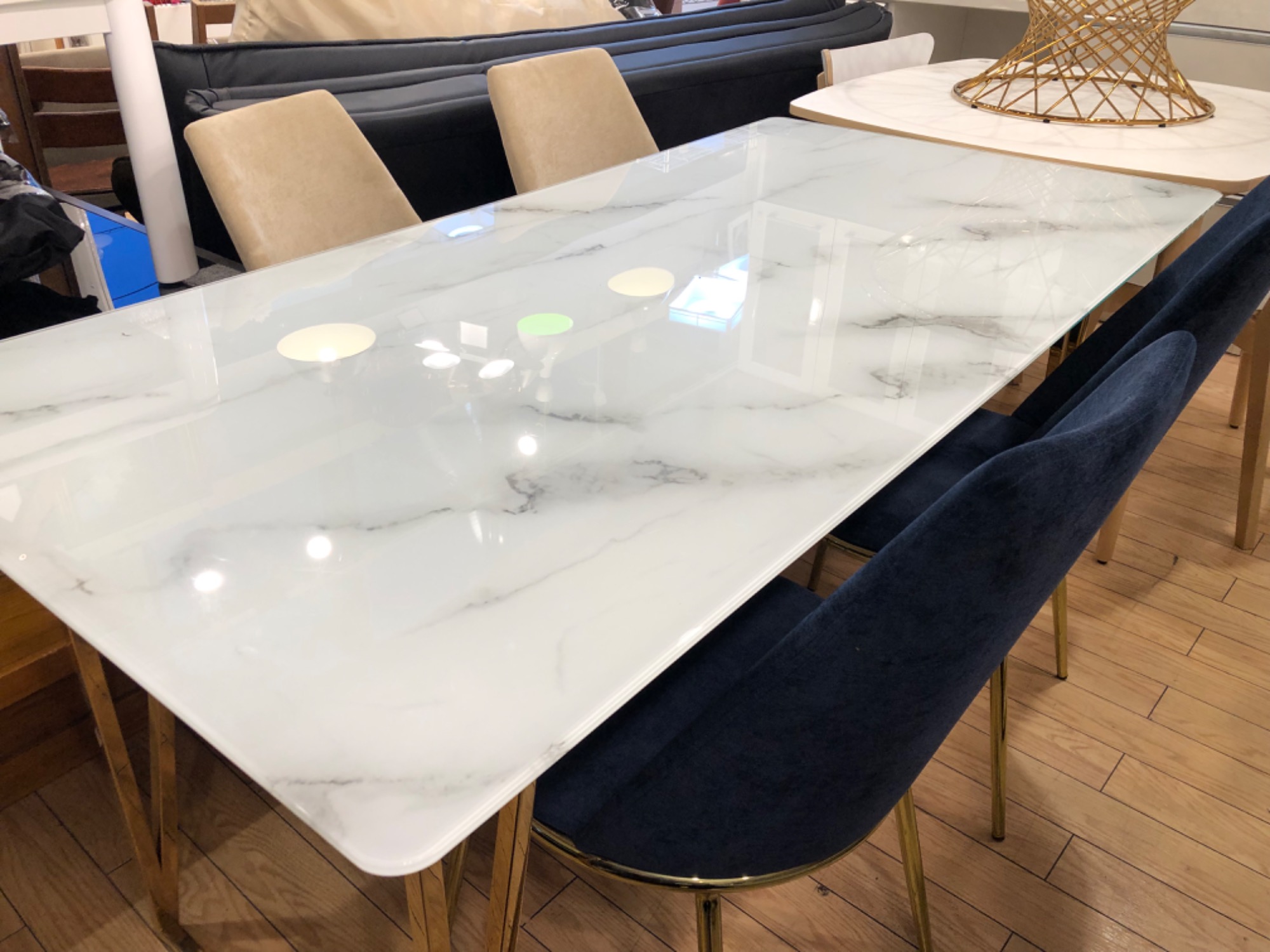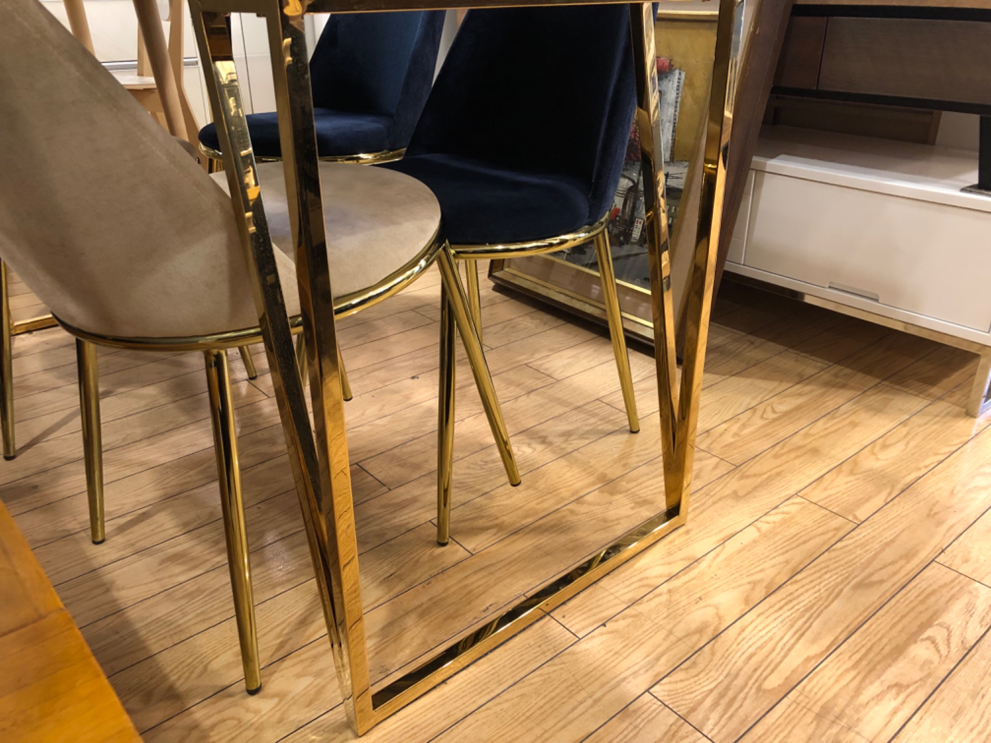 テーブルと椅子どちらも骨組みが金色になっており、非常に高級感があります!