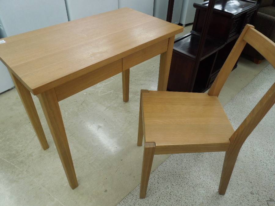使用感もそこそこな人気の無印タモ材シリーズ。こちらは既に廃盤品となっており、お探しの方も多いことかと思います。スペースを取らないコンパクトな設計は使用する人を選ばない万能さが御座います。本来デスクとチェアは別売りになりますが、こちらセット販売となっておりますのでご了承下さい。