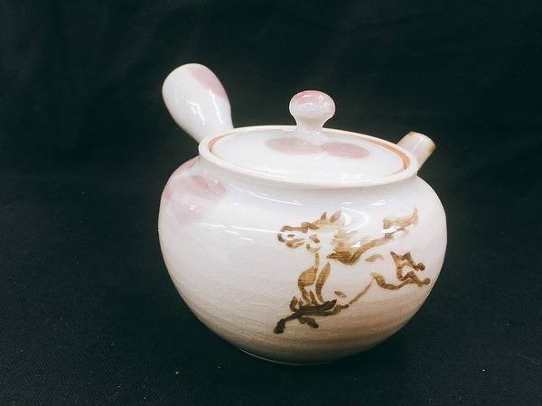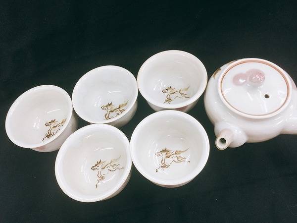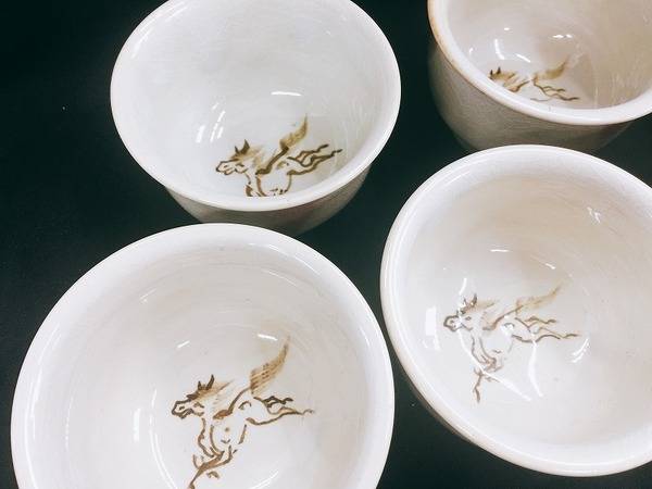 落ち着いたお色に馬が描かれた湯呑みセット。