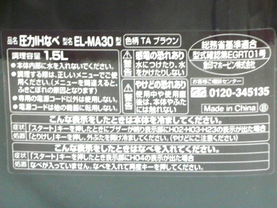 【象印 圧力IH鍋 EL-MA30】