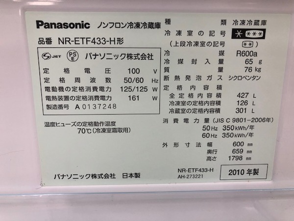 【Panasonic 5ドア冷蔵庫】
