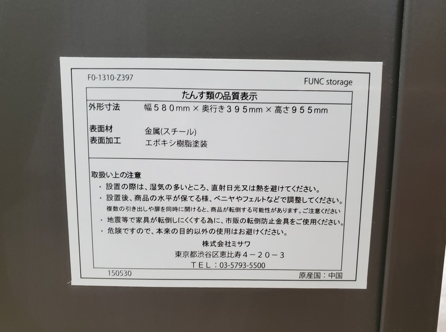 ■サイズ  :580㎜×395㎜×955㎜