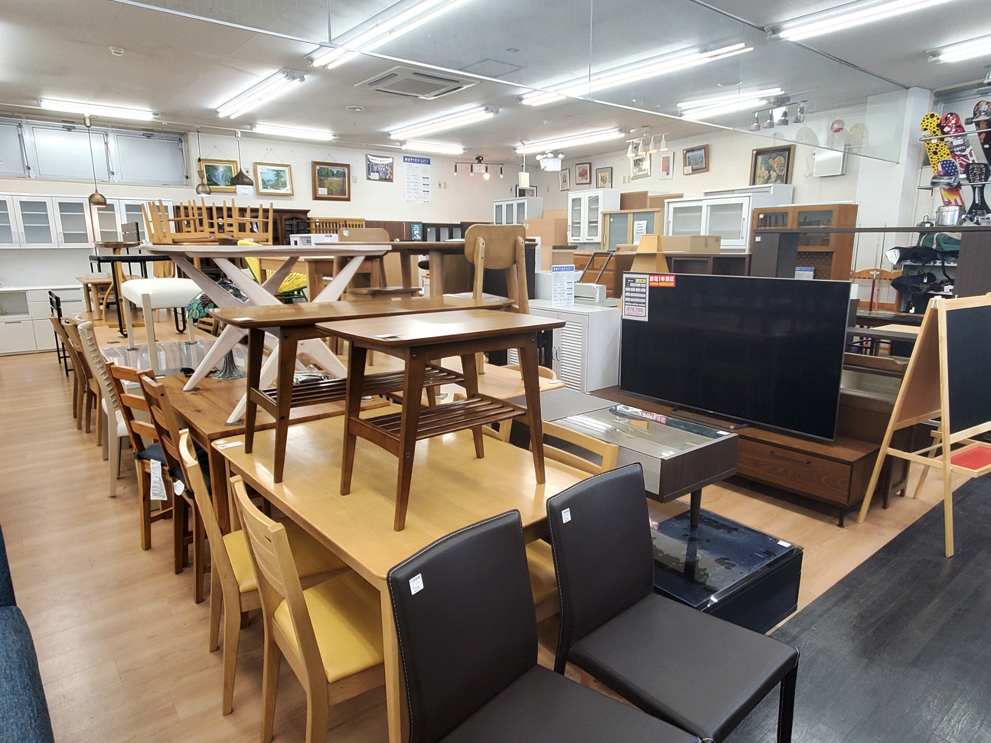 食器棚やレンジボード、本棚などの家具や、小型家電のヘアアイロンやドライヤーも取り揃えておりますので、是非当店までご来店ください!