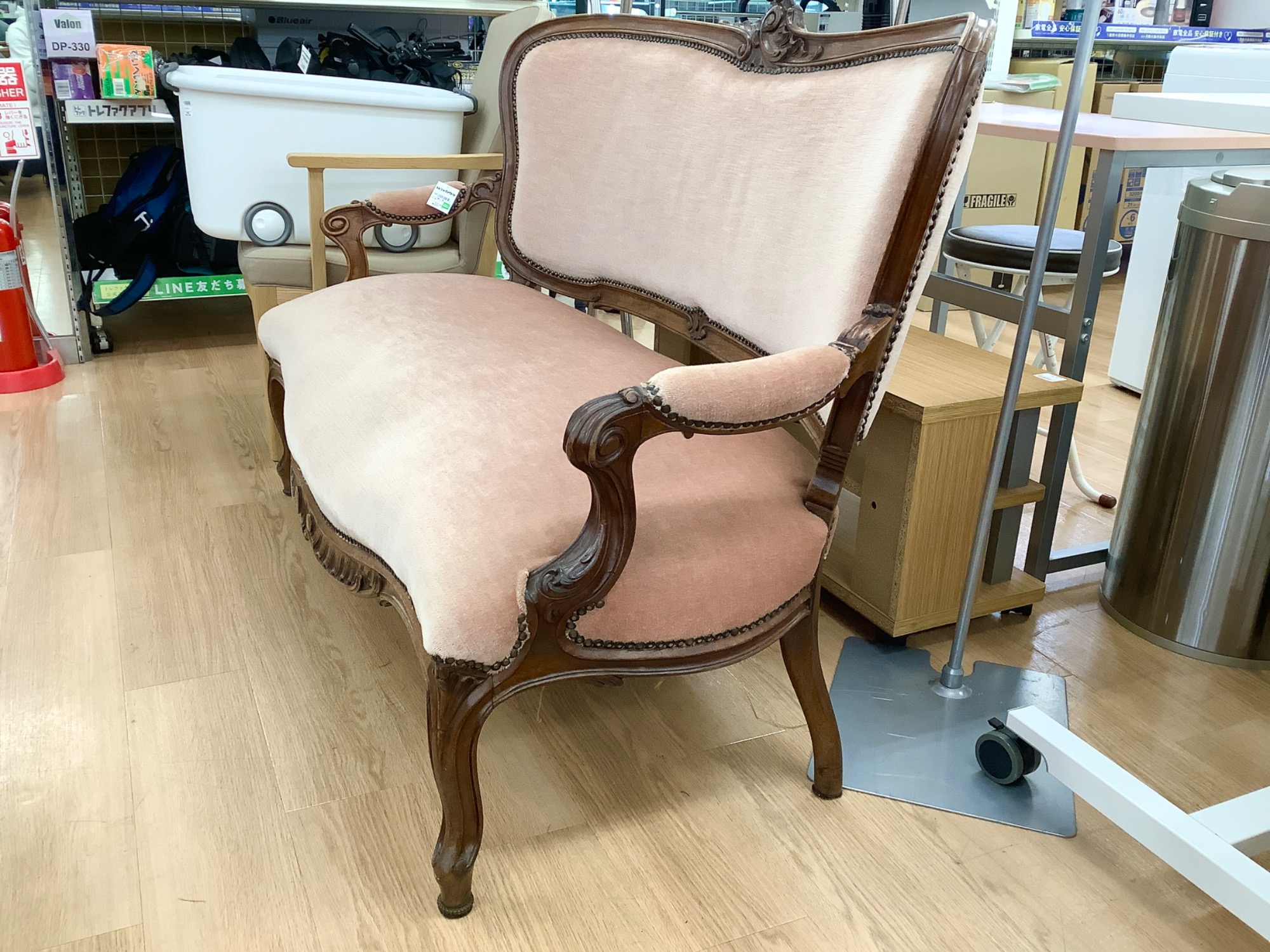 【 アンティーク調 2人掛けソファー ピンク 】