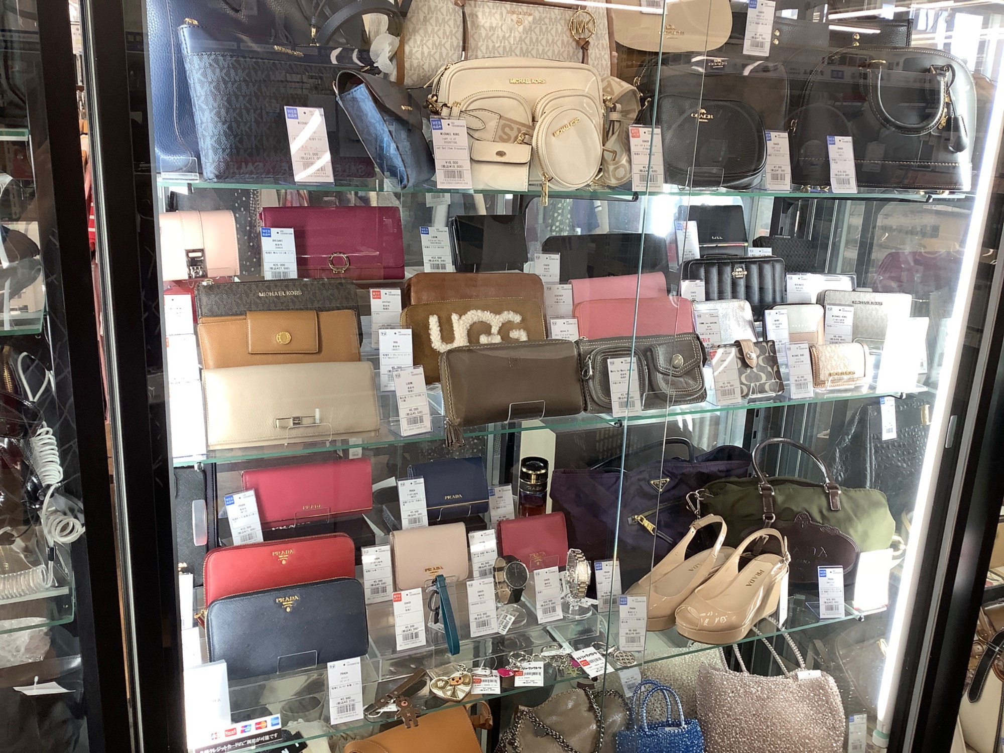 当店のショーケースには他にも多数の財布・バッグ・小物を展示中です。