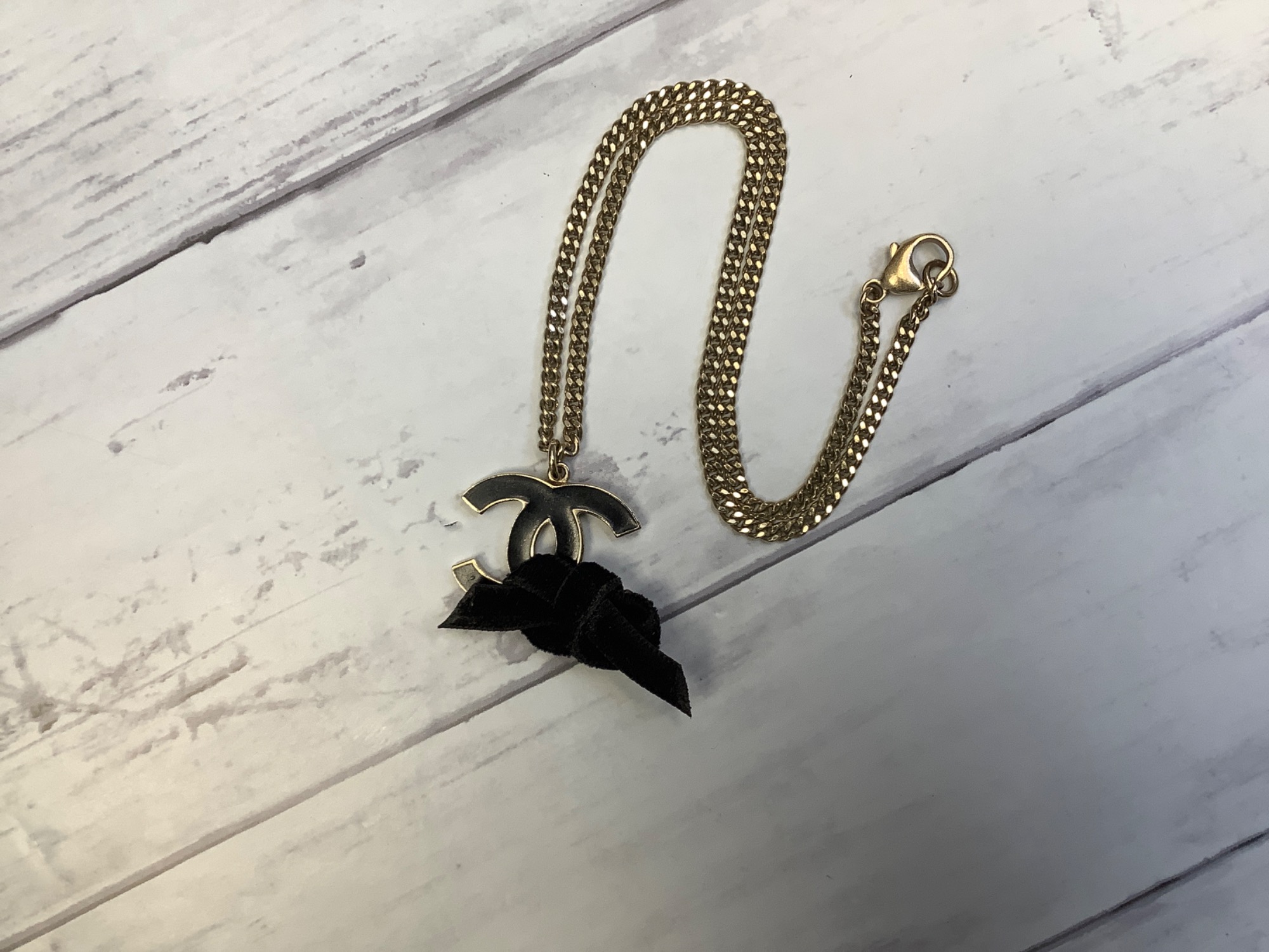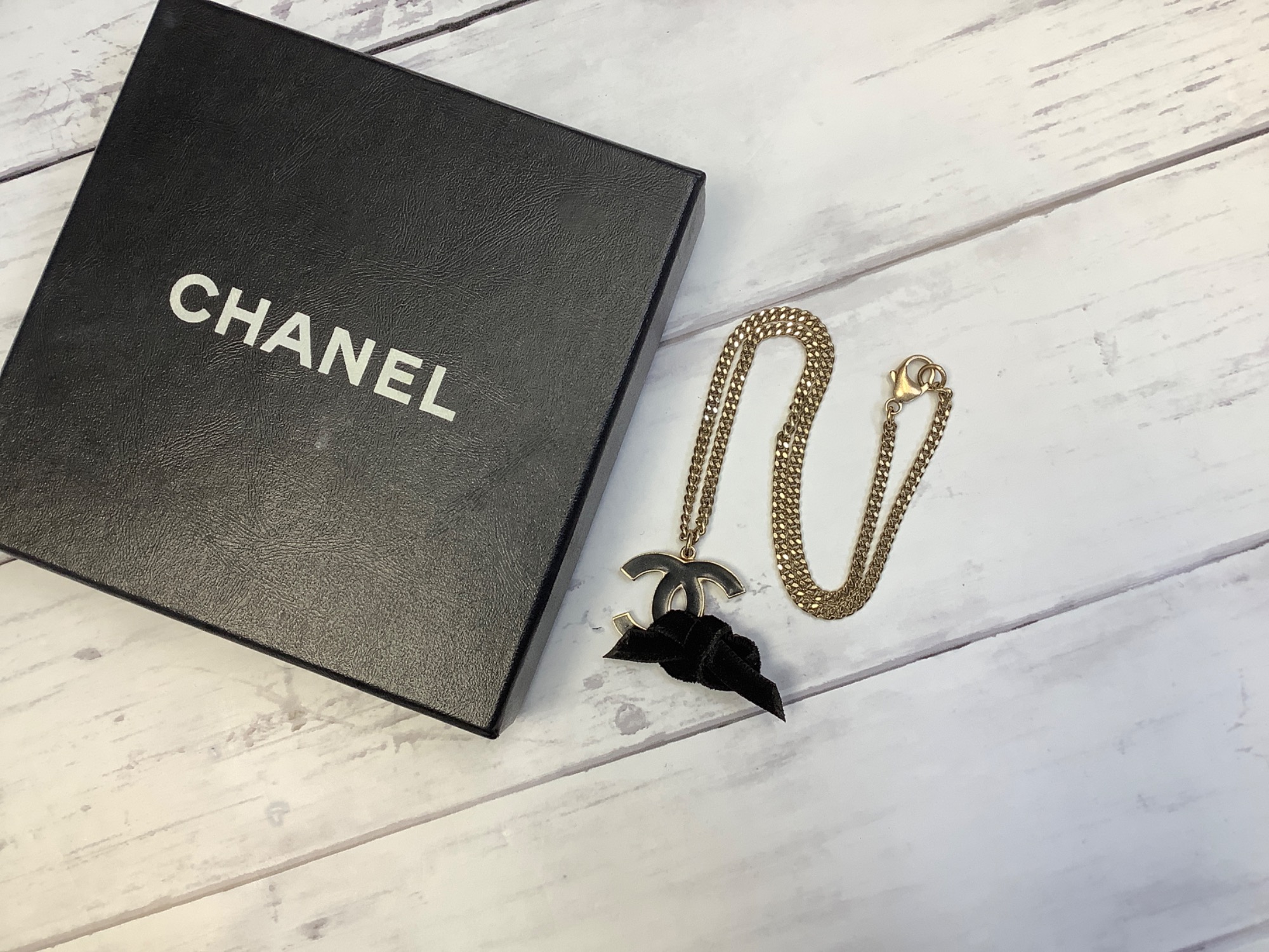 CHANELのココマークリボンネックレスが