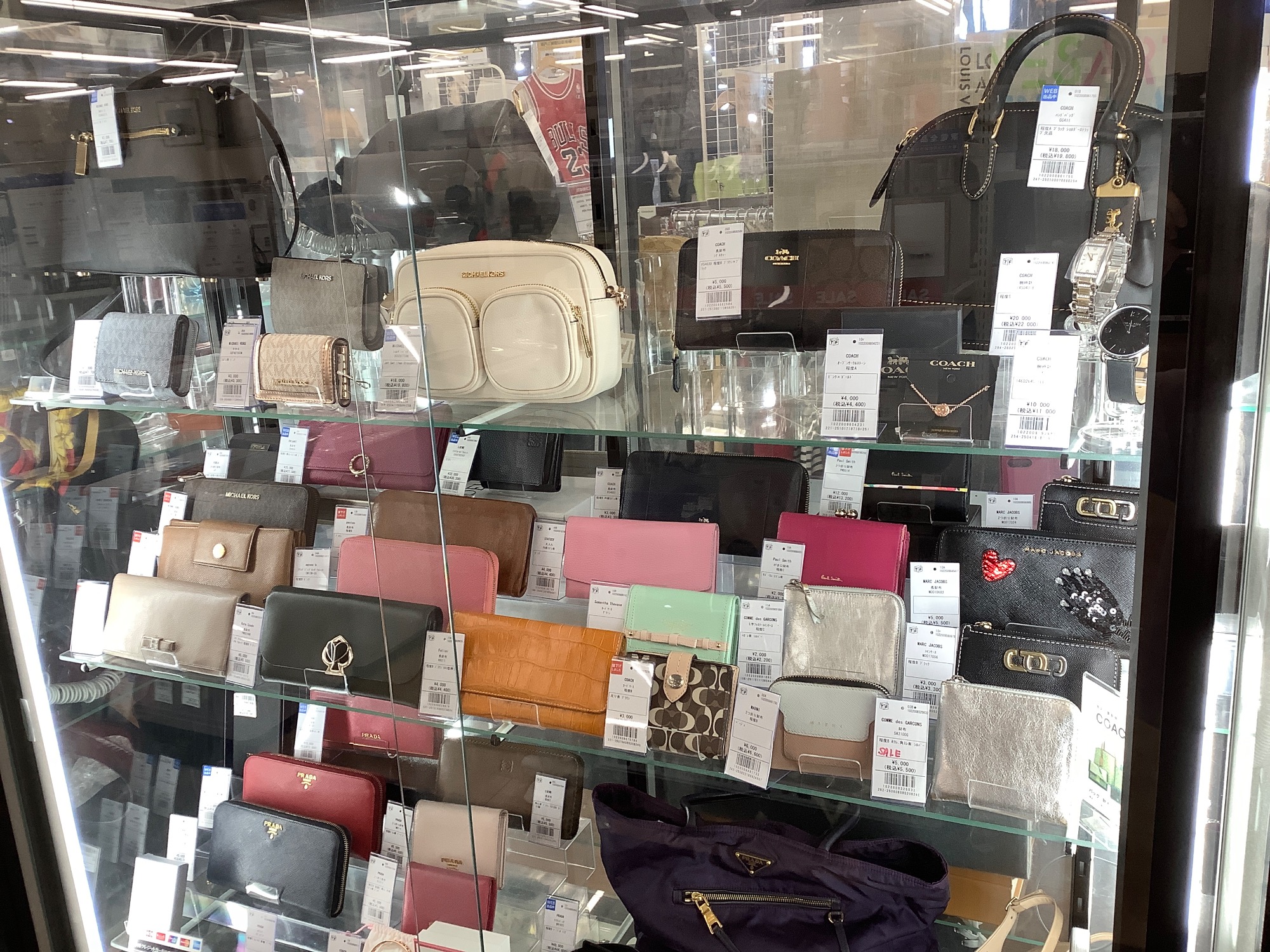 当店のショーケースには他にも多数のバッグ・財布を展示中です。