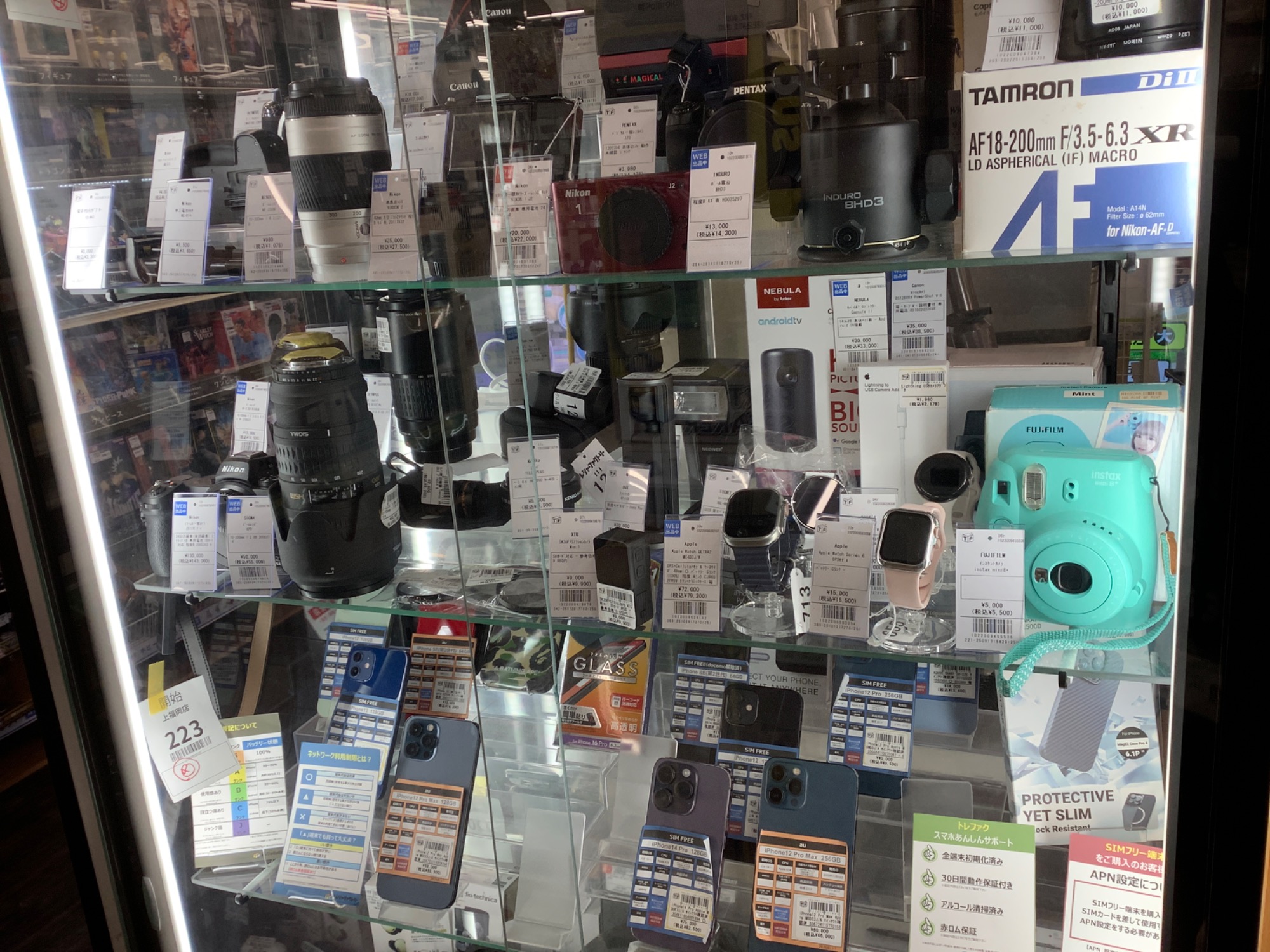 当店のショーケースには他にも多数のスマートフォン・Apple Watch・タブレットを展示中です。