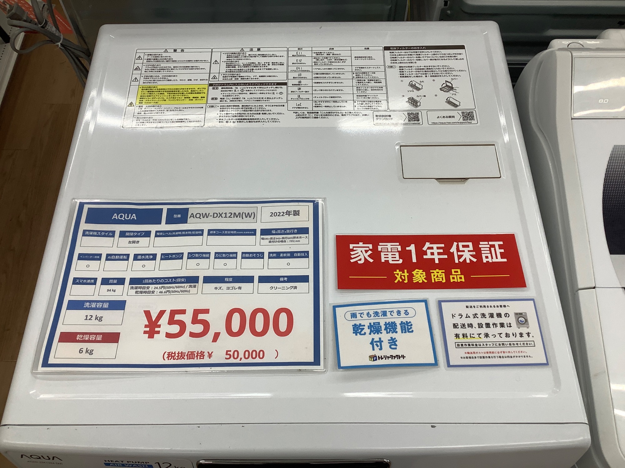 【家電1年間保証対象商品!!】AQUA(アクア)のドラム式洗濯乾燥機 12.0kg AQW-DX12M(W)が買取入荷いたしました!