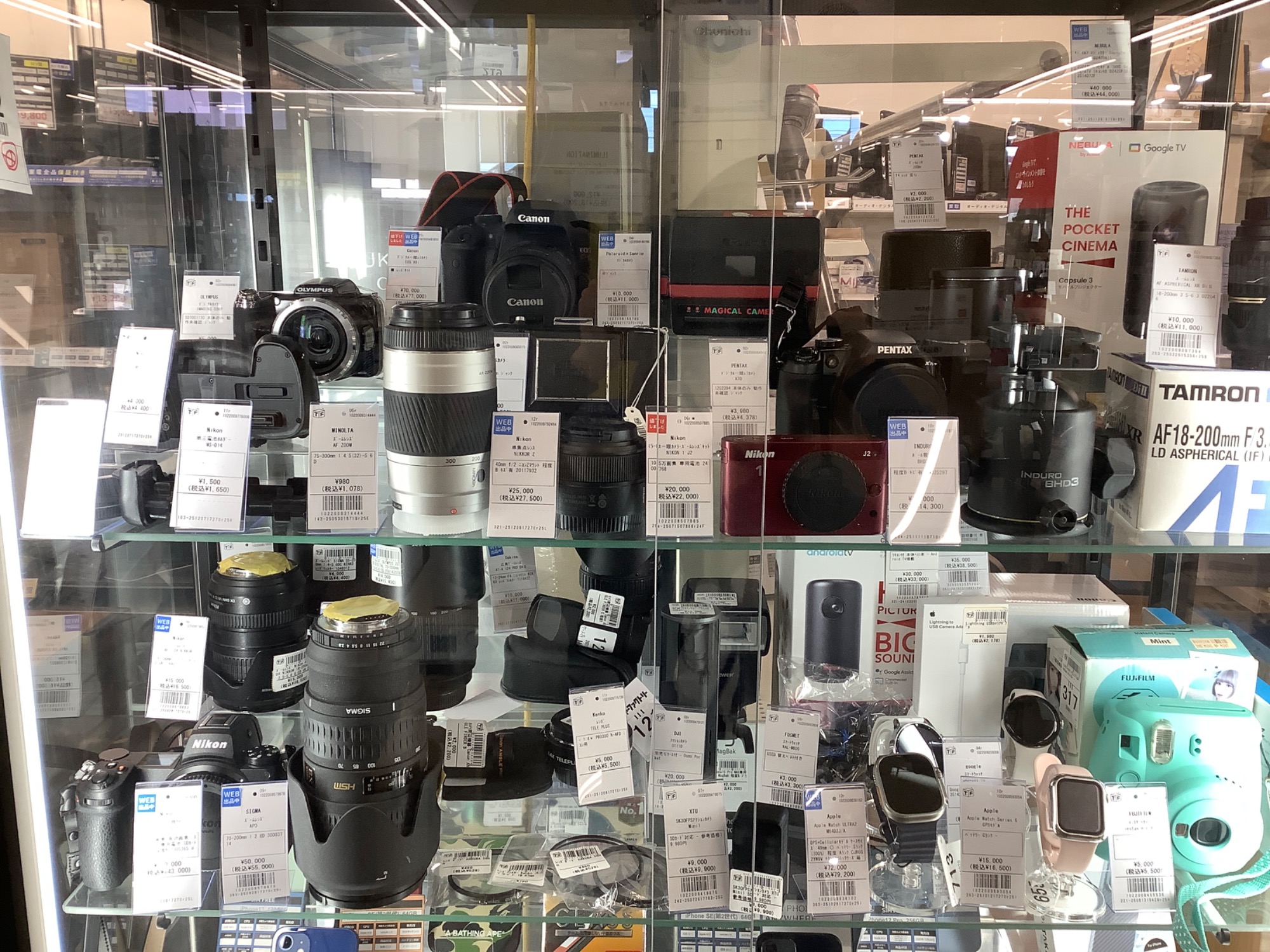 当店のショーケースには他にも多数のカメラ・スマートフォン・Apple Watch・タブレットを展示中です。