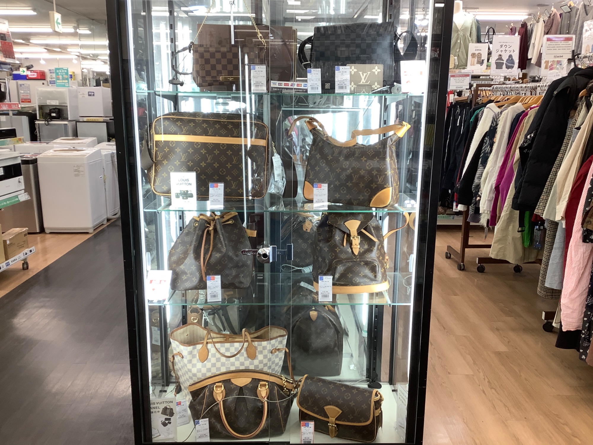 当店のショーケースには他にも多数のバッグ・財布を展示中です。