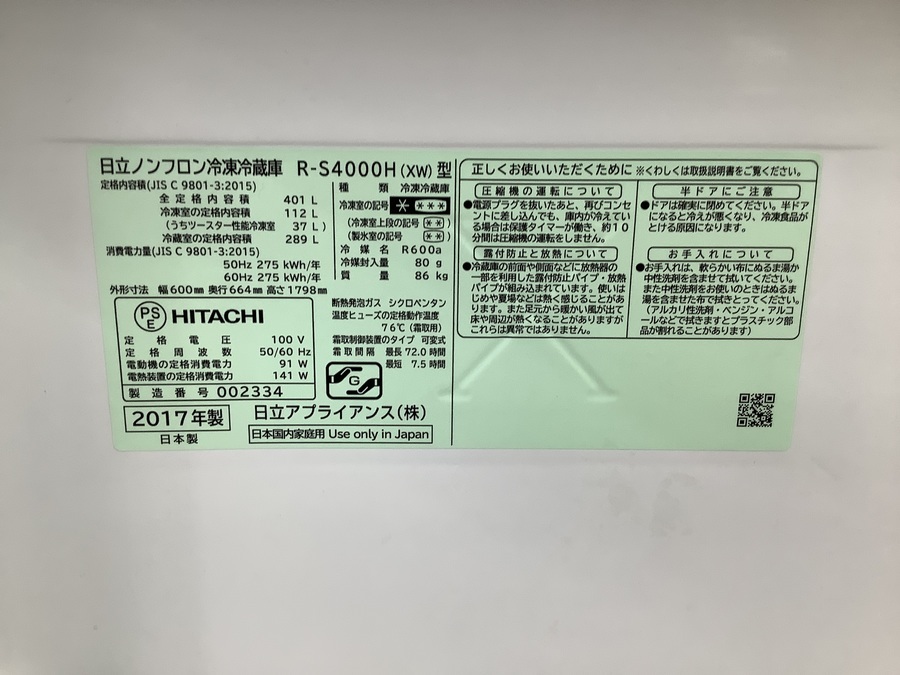 安心の6ヵ月保証付き!HITACHI(日立)の2017年製5ドア冷蔵庫!