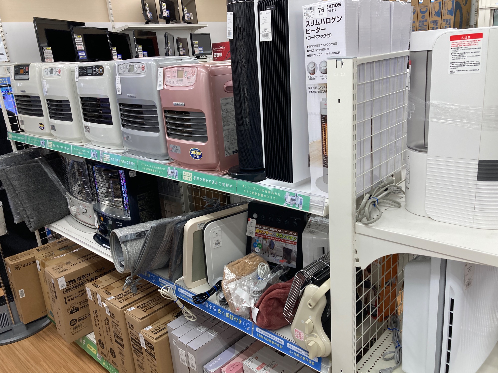 当店ではその他にもファンヒーター、電気カーペット、ガスファンヒーターなど