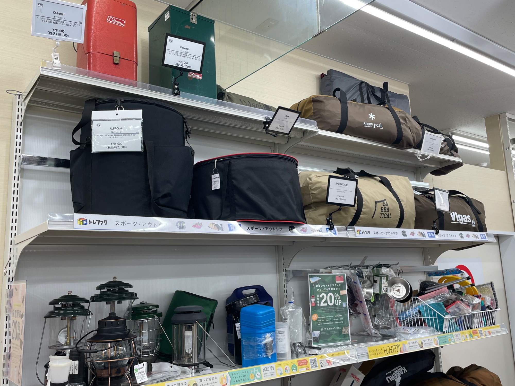 3月はアウトドアブランド買取20%UPキャンペーン!スノーピーク、コールマン、ユニフレームなどのアウトドアブランドはぜひお持ち込みください!
