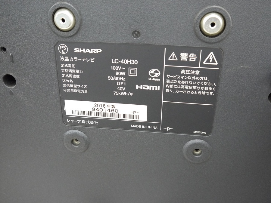 SHARPの40インチ液晶テレビ(2016年製)のご紹介!