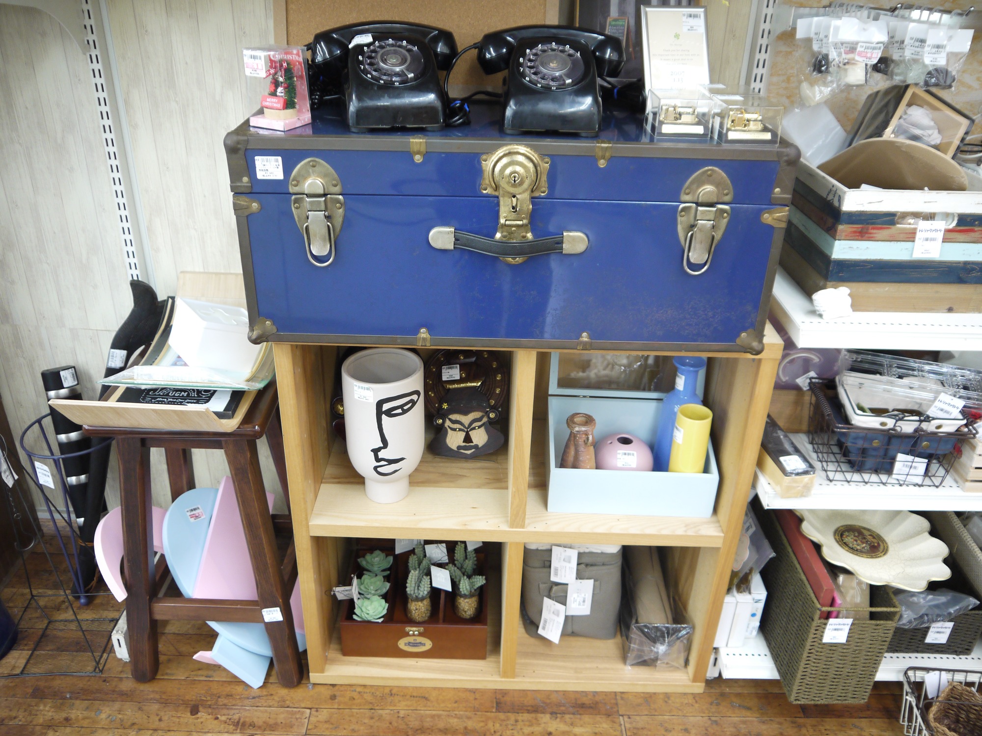 一風変わったコンテナやひと昔前の黒電話、ちょっとしたフェイクグリーンなども取り揃えております!