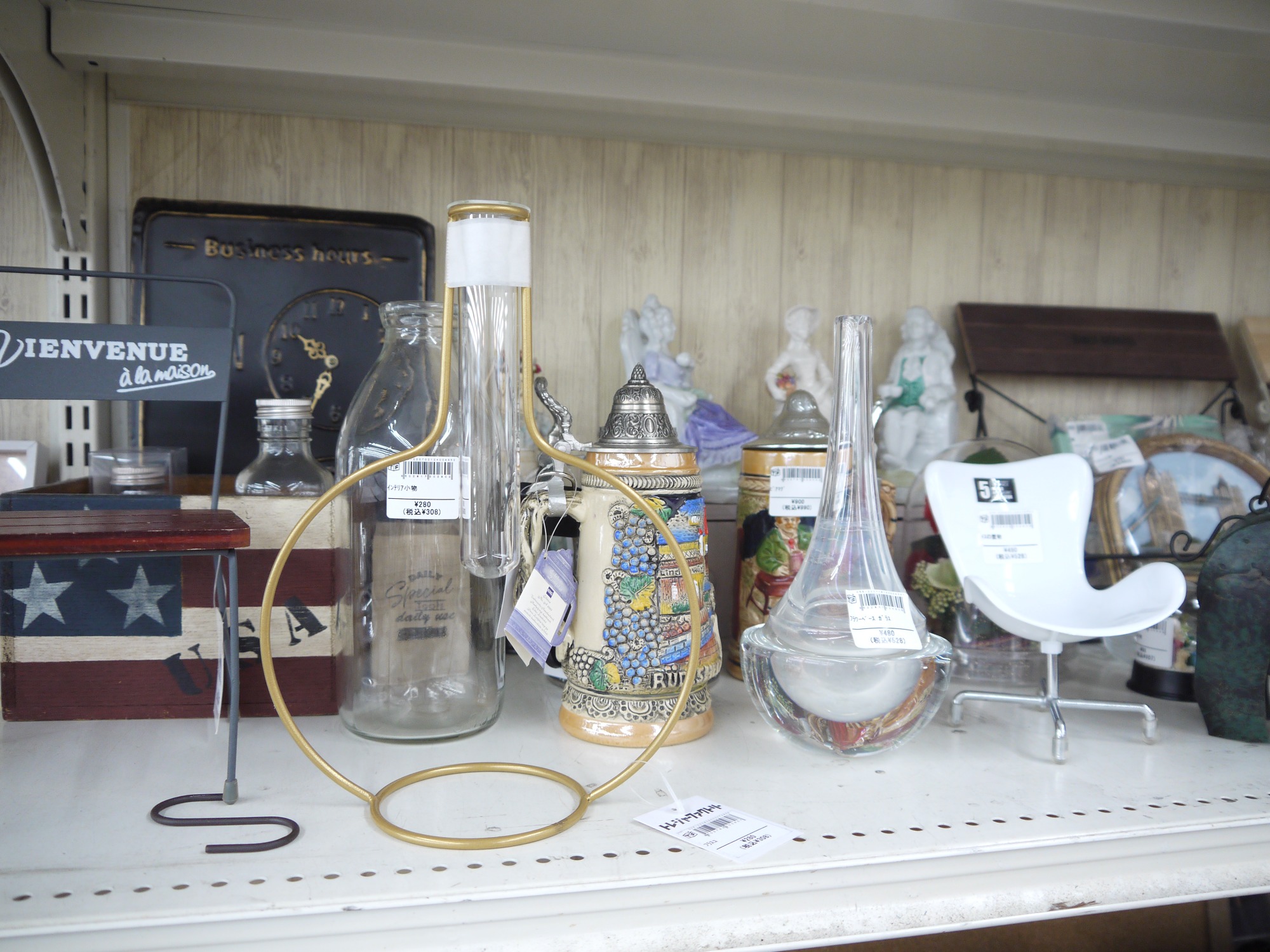 ちょっと変わったガラスの器やジョッキもインテリアとして使いやすいです。