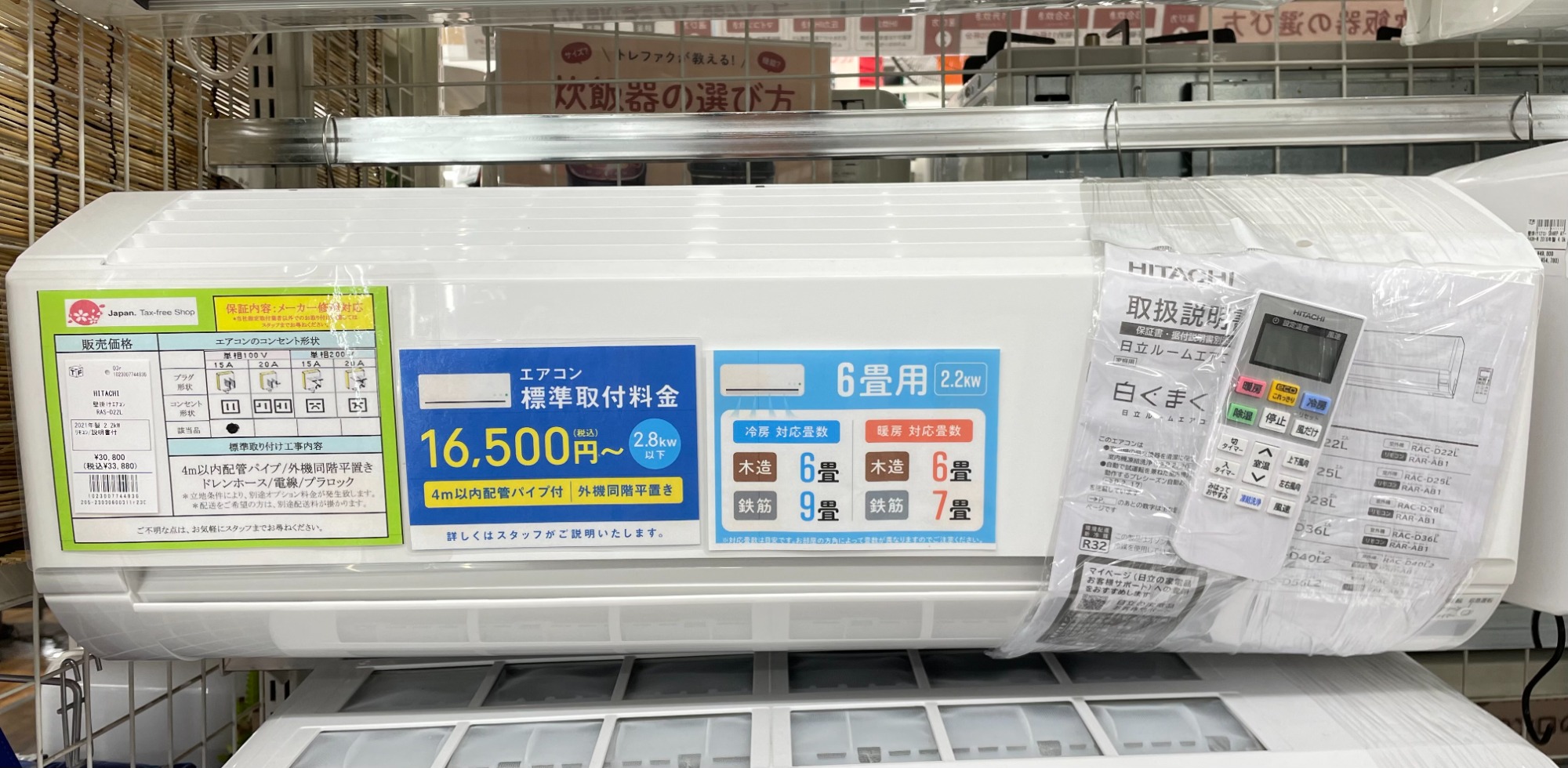上記の商品は1年保証がついたSHARPのエアコンで製造年数も2021年とかなり新しいお品物でございます!