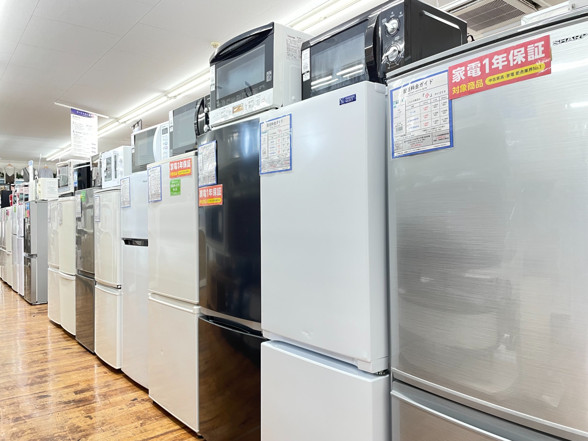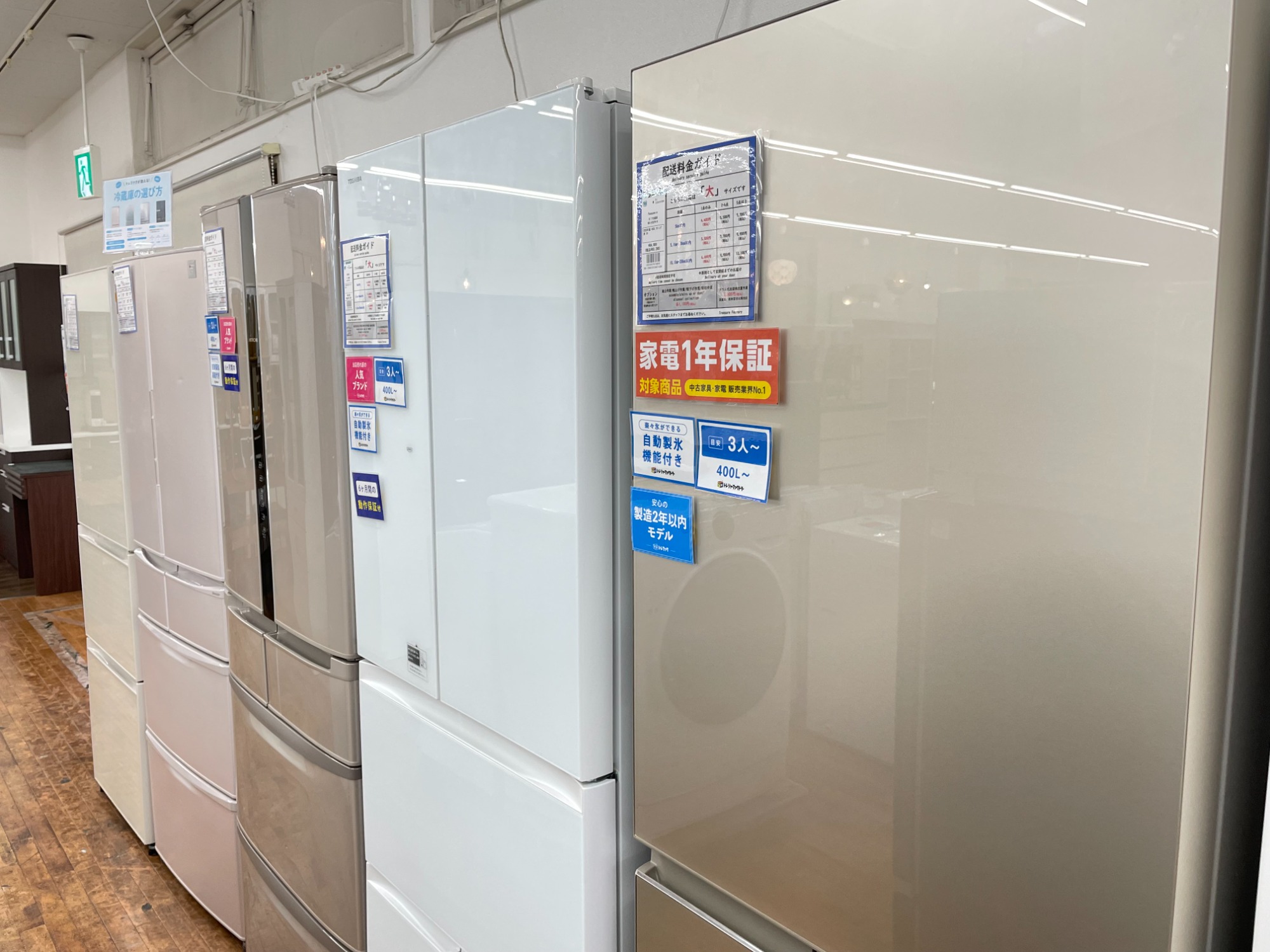単身・ファミリー用の中古冷蔵庫を多数展示中でございます!