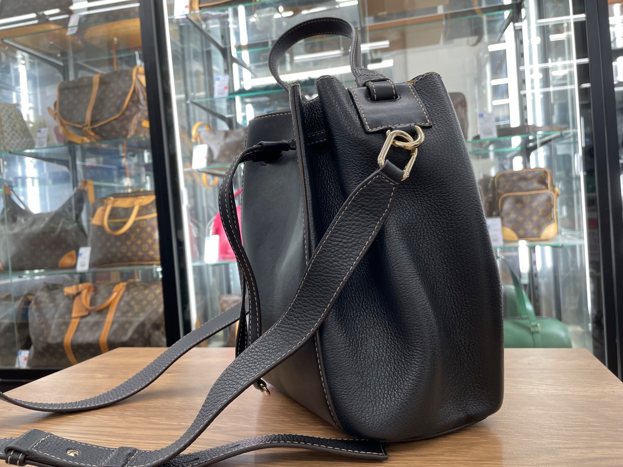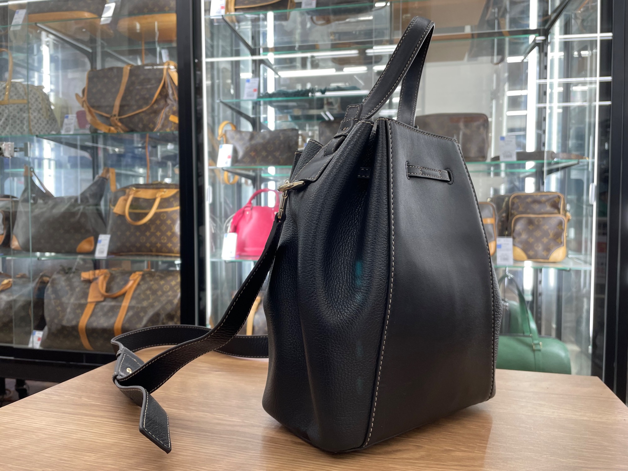 手持ちだけでなく、ショルダーバックとしてもご利用いただけるとても万能なバッグです ♪