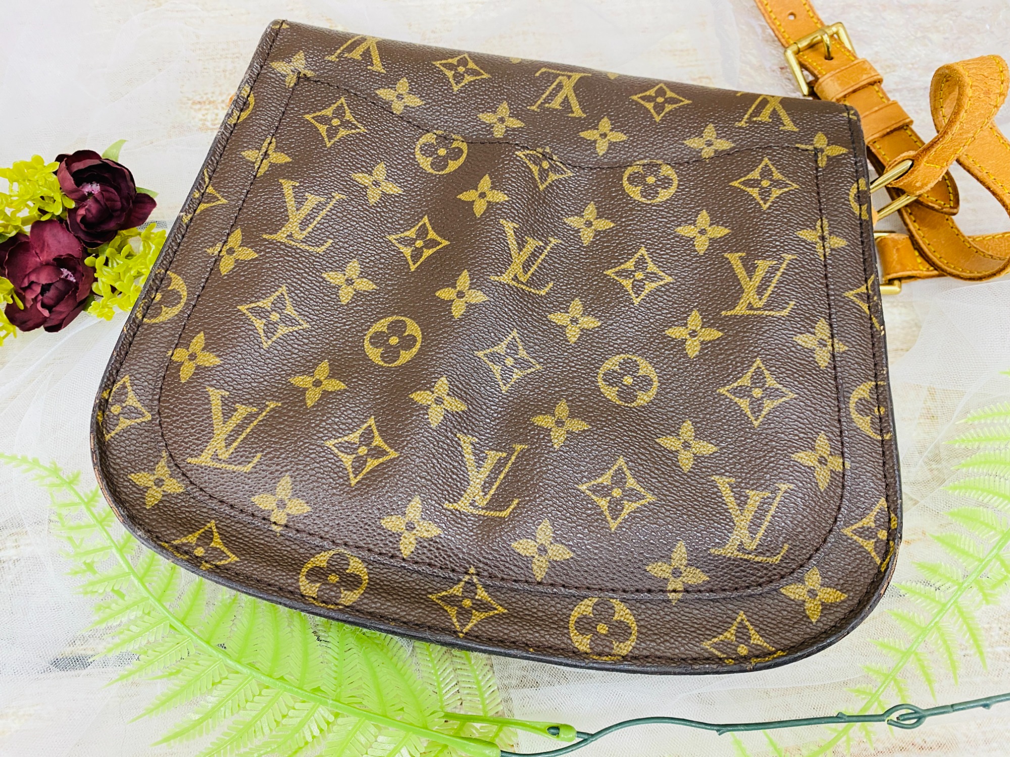 「サンクルー」は、クラシックなモノグラム・キャンバスを使用したショルダーバッグで、丸みを帯びたフラップデザインが特徴的。