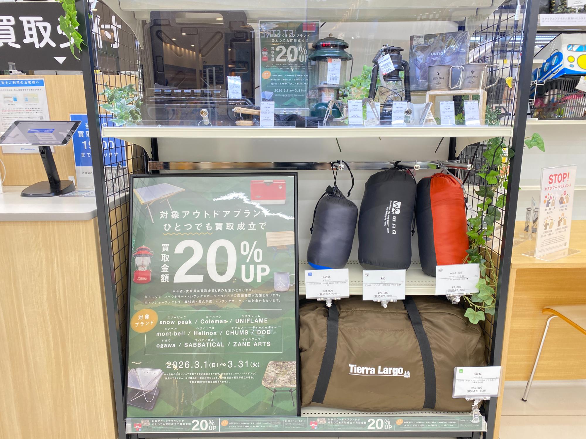 アウトドアブランド買取20%UPキャンペーンは3月1日(日)から3月31日(火)まで!