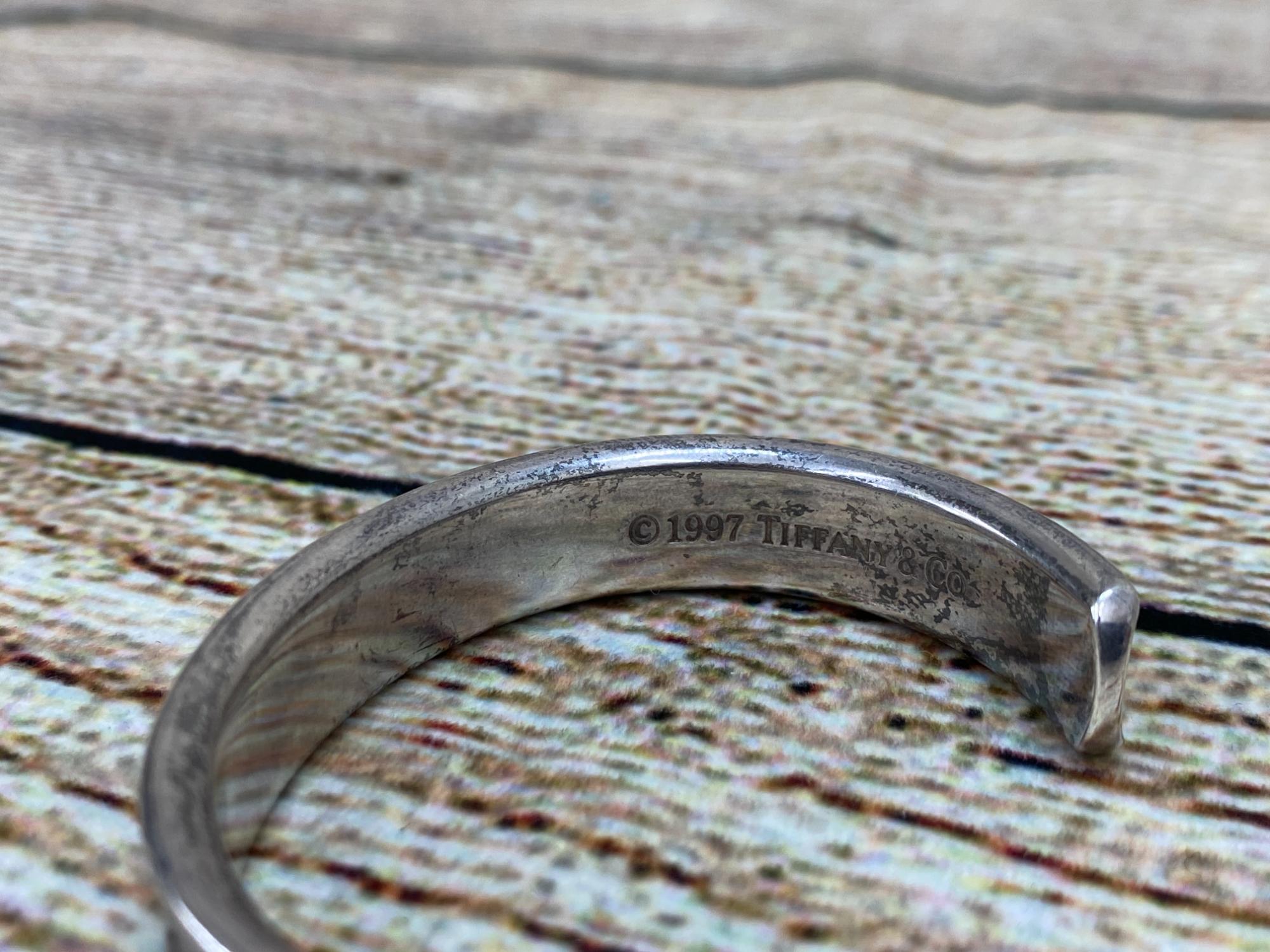 本商品は、日常的に使用されていた形跡のある「程度B(通常の使用感がある中古品)」です。 バングル表面および内側に細かな線傷や打ち傷、またシルバー特有のくすみ・ヨゴレが見受けられます。