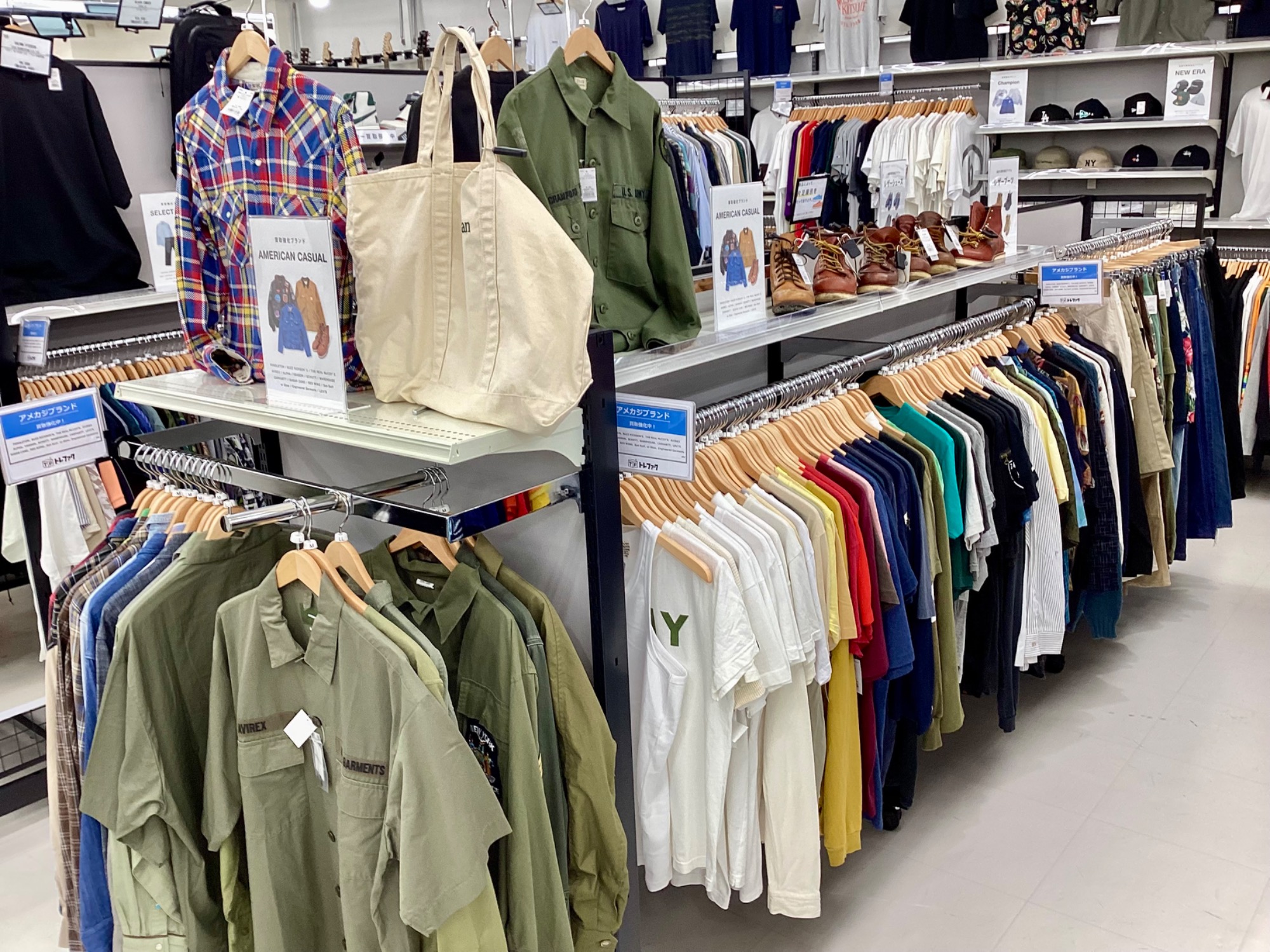 こちらはLevi's(リーバイス)やRALPH LAUREN(ラルフローレン)、Avirex、RED WINGなどのアメカジ売場になります!