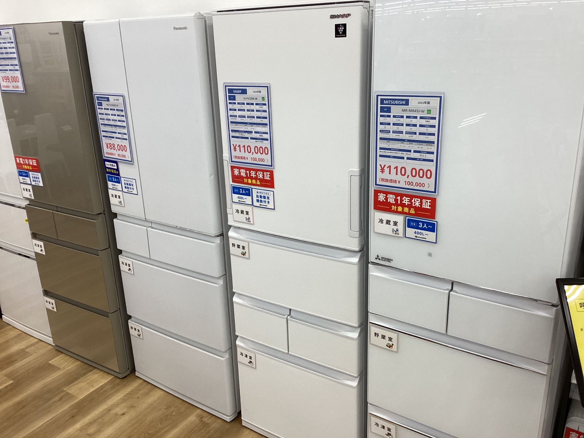 冷蔵庫、洗濯機展示台数50台以上!