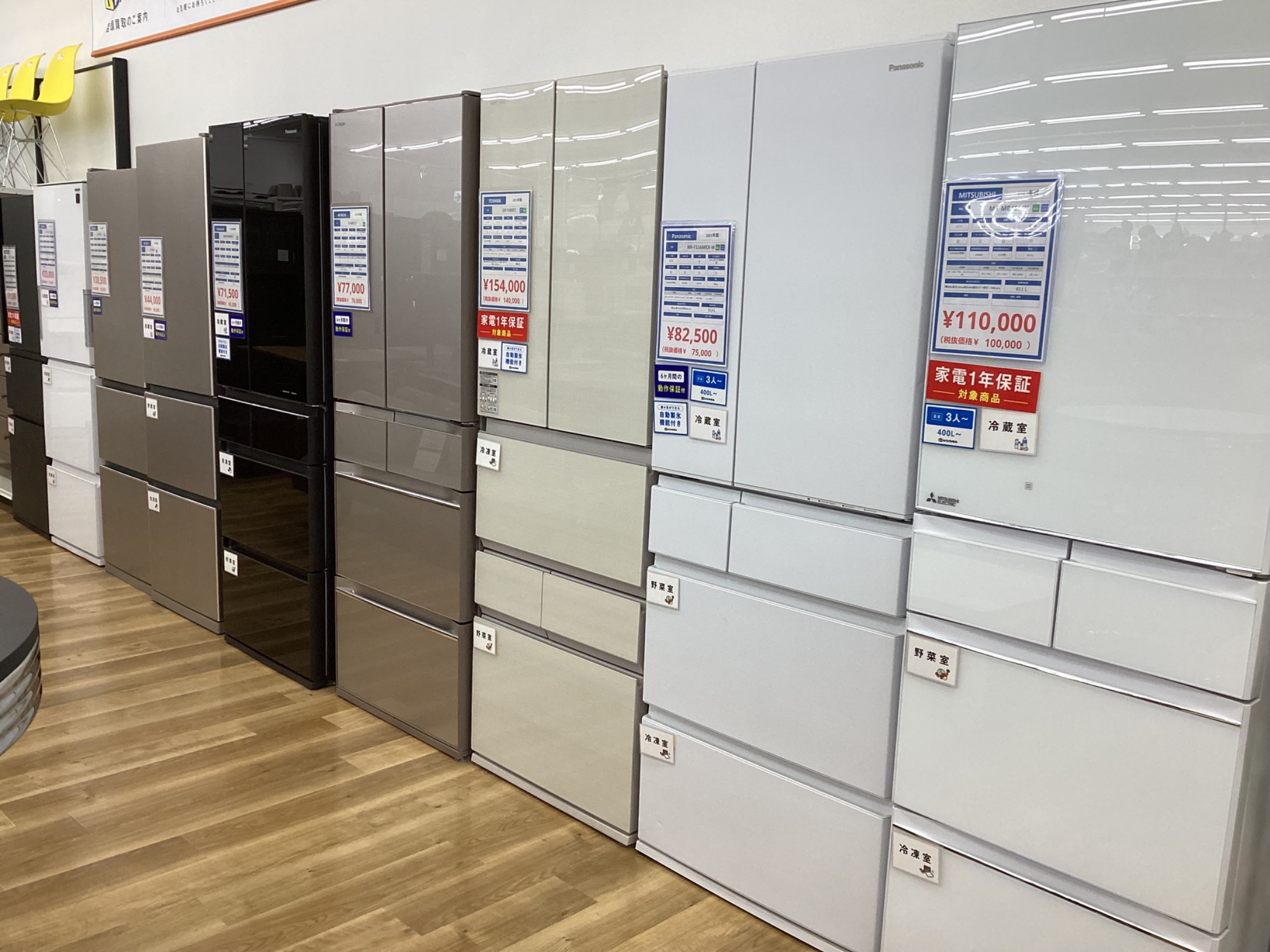 冷蔵庫、洗濯機展示台数50台以上!
