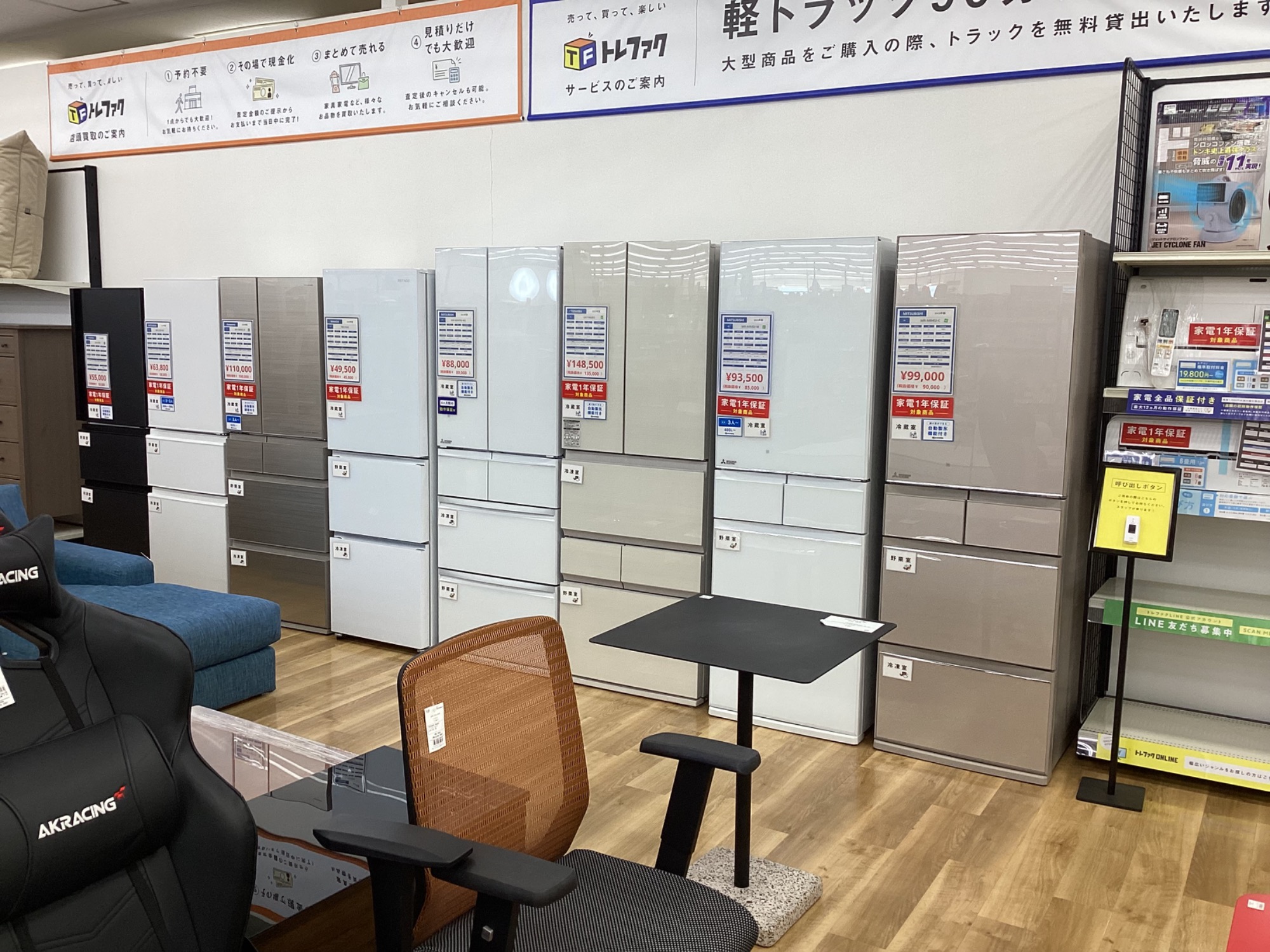 冷蔵庫、洗濯機展示台数50台以上!