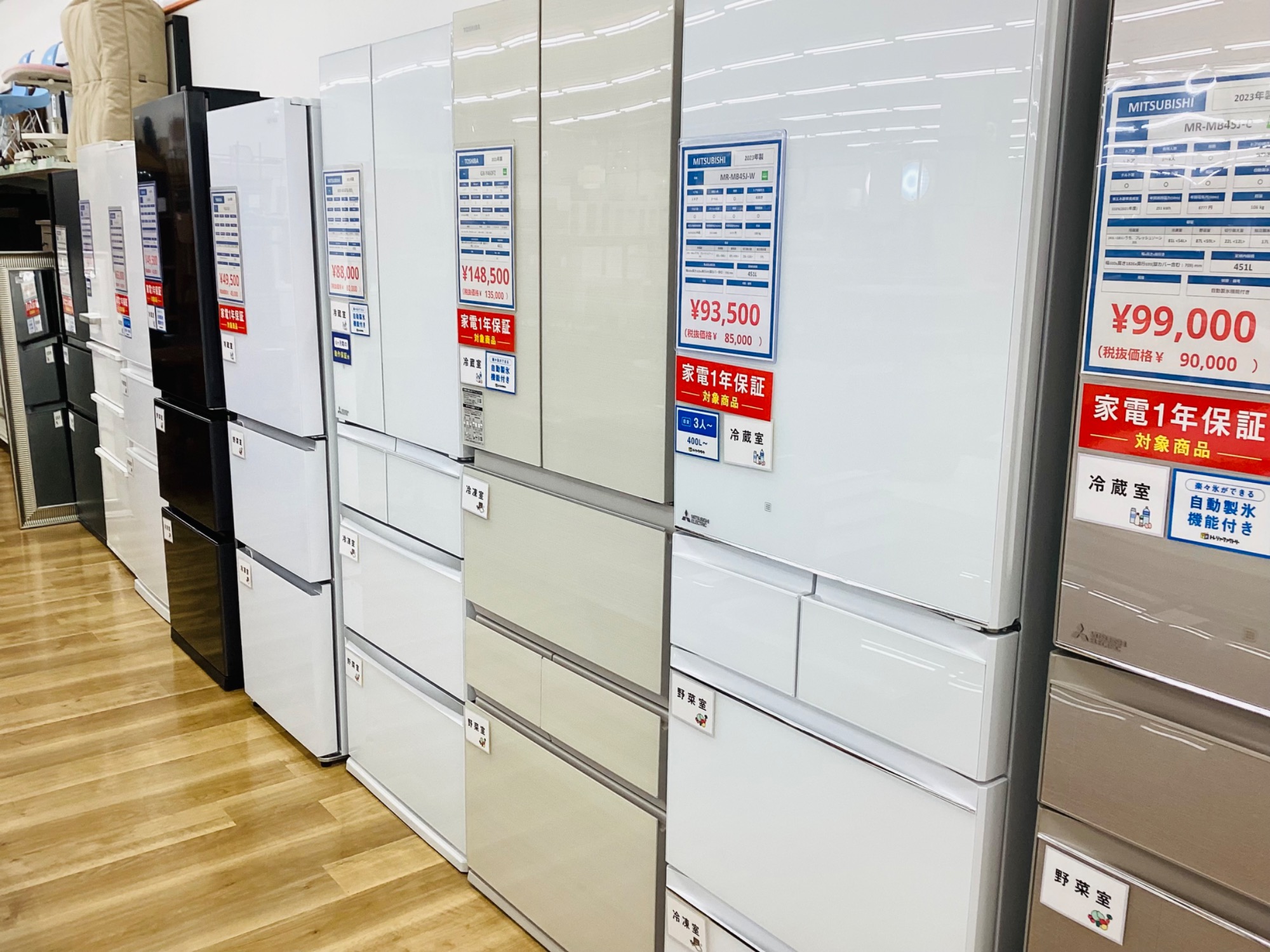 冷蔵庫、洗濯機展示台数50台以上!