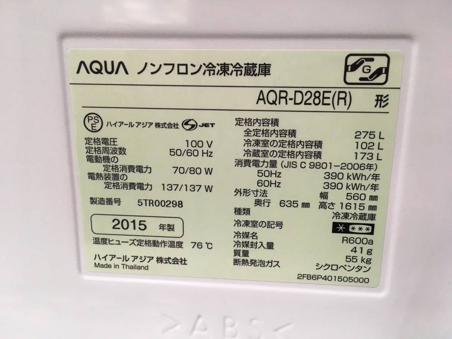 今回はAQUAの2ドア冷蔵庫のご紹介です!!