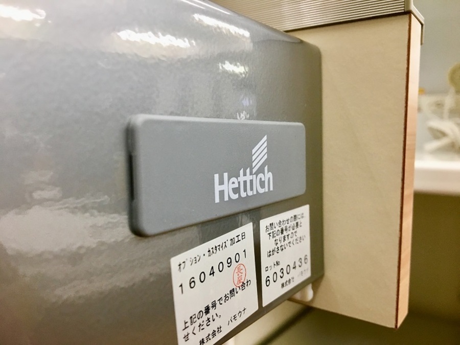「Hettich(ヘティヒ社)のイノテック引出を採用です。安定と滑らかに閉まるレール。