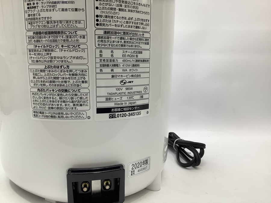 2020年製!象印【ゾウジルシ】のスチーム式加湿器 EE-RQ50 が入荷しました!【川越店】